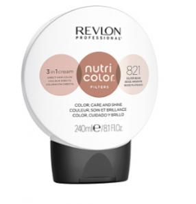 Rеvlоn Nutri Color Filters тон 821 240мл\ серебристо-бежевый 240 мл Уже готовая к применению формула без аммиака, ее можно наносить непосредственно на волосы в качестве маски без добавления активатора или оксиданта. Прямой краситель без аммиака Rеvlоn Professional Nutri Color Filters сочетает в себе цвет и преимущества уходовой маски : увлажнение, блеск, уход. Его формула, богатая фруктовыми кислотами AHA, с питательными, увлажняющими и смягчающими свойствами, смягчает и разглаживает поверхность волос, закрывая кутикулы, защищает волосы от статического электричества и придает интенсивный блеск, не утяжеляя волосы. Волосы здоровые и сияющие, цвет насыщенный и яркий. Способ применения : После мытья головы нанесите, как бальзам, расческой или руками и оставьте примерно на 3-5 минут. Дайте ему поработать 15 минут для создания фантастических эффектов. Затем осторожно смойте теплой водой. Рекомендуется использовать перчатки при окрашивании, так как интенсивные цвета также окрашивают кожу и ногти. Объем : 240 мл