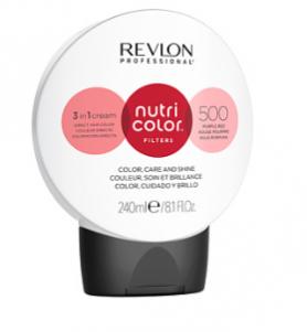 Rеvlоn Nutri Color Filters тон 500 240мл\ пурпурно-красный 240 мл Уже готовая к применению формула без аммиака, ее можно наносить непосредственно на волосы в качестве маски без добавления активатора или оксиданта. Прямой краситель без аммиака Rеvlоn Professional Nutri Color Filters сочетает в себе цвет и преимущества уходовой маски : увлажнение, блеск, уход. Его формула, богатая фруктовыми кислотами AHA, с питательными, увлажняющими и смягчающими свойствами, смягчает и разглаживает поверхность волос, закрывая кутикулы, защищает волосы от статического электричества и придает интенсивный блеск, не утяжеляя волосы. Волосы здоровые и сияющие, цвет насыщенный и яркий. Способ применения : После мытья головы нанесите, как бальзам, расческой или руками и оставьте примерно на 3-5 минут. Дайте ему поработать 15 минут для создания фантастических эффектов. Затем осторожно смойте теплой водой. Рекомендуется использовать перчатки при окрашивании, так как интенсивные цвета также окрашивают кожу и ногти. Объем : 240 мл