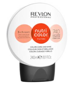 Rеvlоn Nutri Color Filters тон 740 медный 240 мл Уже готовая к применению формула без аммиака, ее можно наносить непосредственно на волосы в качестве маски без добавления активатора или оксиданта. Прямой краситель без аммиака Rеvlоn Professional Nutri Color Filters сочетает в себе цвет и преимущества уходовой маски : увлажнение, блеск, уход. Его формула, богатая фруктовыми кислотами AHA, с питательными, увлажняющими и смягчающими свойствами, смягчает и разглаживает поверхность волос, закрывая кутикулы, защищает волосы от статического электричества и придает интенсивный блеск, не утяжеляя волосы. Волосы здоровые и сияющие, цвет насыщенный и яркий. Способ применения : После мытья головы нанесите, как бальзам, расческой или руками и оставьте примерно на 3-5 минут. Дайте ему поработать 15 минут для создания фантастических эффектов. Затем осторожно смойте теплой водой. Рекомендуется использовать перчатки при окрашивании, так как интенсивные цвета также окрашивают кожу и ногти. Объем : 240 мл