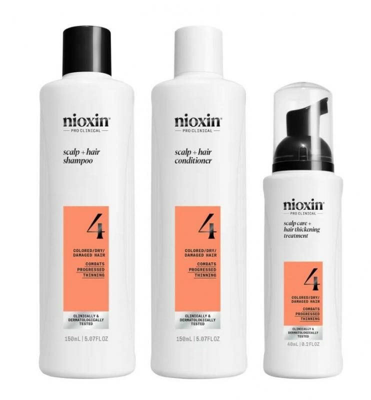 mdash, это система ухода за окрашенными волосами с прогрессирующим истончением. Профессиональные средства по уходу за волосами специально разработаны для утолщения волос, обеспечивания защиты цвета и придания волосам густоты. Процедура Nioxin System 4 освежает кожу головы, уменьшает выпадение волос из-за ломкости прядей, укрепляет волосы и придает окрашенным волосам здоровый блеск. Шампунь Nioxin Cleanser удаляет грязь, излишки масла и другие загрязнения окружающей среды с кожи головы и волос. Nioxin Scalp Therapy Conditione