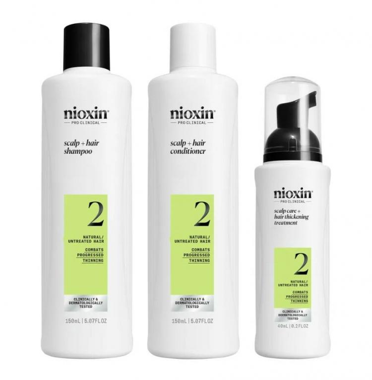 Nioxin система 2 набор 150мл+150мл+50мл NEW Набор Nioxin Scalp + Hair Thickening System 2 для натуральных, заметно редеющих волос придает структуре волос больший объем и защищает от ломкости. Эта уникальная профессиональная трехэтапная система ухода за кожей головы и волосами основана на инновационном подходе и была разработана как специальное средство для более сильных и густых волос. При регулярном использовании комплекса Nioxin System XXL 2 кожа головы долго остается чистой и свежей, а приятный аромат поднимет настроение и никого не оставит равнодушным. Содержимое набора Nioxin Scalp + Hair Thickening System 2 Nioxin Scalp + Hair System 2 Шампунь 150 мл,