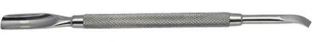 METZGER Пушер РК-411 Пушер двухсторонний. Имеет две рабочие поверхности - с одной стороны лопатку, площадь поверхности которой идеально соответствует форме ногтя, а заточка позволяет мягко отодвинуть кутикулу, а с другой - изогнутую под специальным углом пику. Заточка и форма пики позволяют эффективно удалять птеригий и тщательно очищать ногтевое плато под любым углом. Пушер PK-411 может быть использован как при проведении маникюра, так и при педикюре, а также при подготовке натуральных ногтей перед наращиванием, что делает его универсальным. Инструмент может быть дезинфицирован во всех дезинфицирующих растворах. Страна бренда Германия.