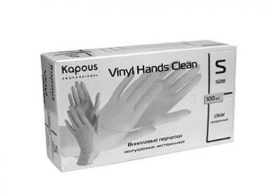 Kapous виниловые перчатки vinyl hands clean неопудренные нестерильные прозрачные размер s 100 шт. в уп./