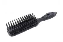 Основание щётки для горячей укладки волос Dragon Air Vent Styler изготовлено лёгкого пластика. Эргономичная форма ручки помогает удобно располагать и контролировать щётку в руке при выполнении разных типов укладки. Насечки на шейке щётки (между подушкой и ручкой) облегчают лёгкость вращения щётки в руке и позволяют лучше её удерживать. 76 отверстий в резиновом основании подушки способствуют лучшей вентиляции при сушке феном и ускорению процесса укладки волос. Подвижные закруглённые штырьки имеют круглую форму и обеспечивают бережное прикосновение к коже головы, что делает эту щётку пригодной не только для сушки и укладки волос, но и для нанесения ухаживающих средств и SPA процедур по уходу за волосами Shiatsu.