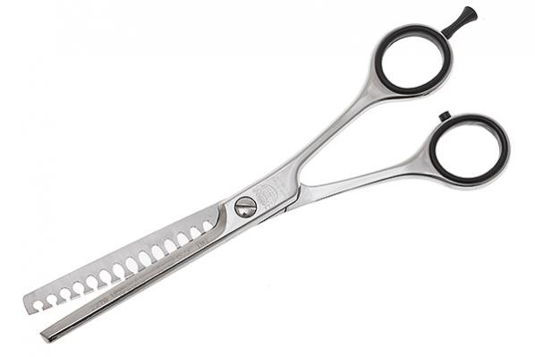 Ножницы филировочные Kiepe Professional 14 зубцов. Зубцы особой формы обеспечивают более мягкий выход из пряди волос. Небольшое количество зубцов позволяет осуществлять деликатную филировку волос с малым процентом сосотриженных волос за один `шаг`. Ножницы изготовлены из закалённой нержавеющей стали высокой твёрдости. Форма ножниц классическая. В комплекте съёмные пластиковые кольца и упор для мизинца. Артикул : 2276-6,5 Бренд : Kiepe Тип ножниц : Филировочные Форма ножниц : Классическая Размер ножниц : 6,5˝