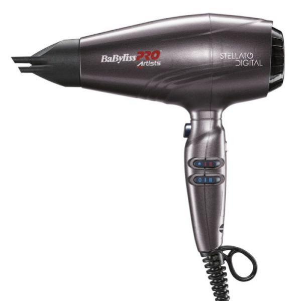 Новый фен от Babyliss Pro STELLATO DIGITAL - самый легкий и самый производительный фен из всех профессиональных фенов, существующих на данный момент на рынке. Мощность 2400 Вт, скорость воздушного потока 208 км\ч, скорость вращения мотора 22 800 об\мин, давление воздушного потока 1860 Па, объем выдуваемого воздуха 91 м3\ч, коэффициент сушки 6.30 грамм воды в минуту &