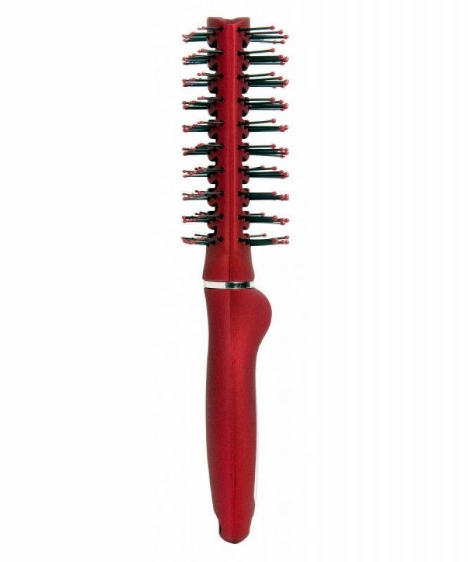 Щетка туннельная двухсторонняя Titania с пластиковыми зубцами. Пластиковые наконечники зубцов в виде шариков не травмируют нежную кожу головы. Удобная на ощупь прорезиненная ручка предотвращает скольжение руки во время укладки. Пластиковые наконечники зубцов в виде шариков не травмируют нежную кожу головы. Цвет красный.