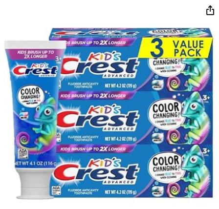 Детская зубная паста Crest Advanced с фторидом, со вкусом жевательной резинки, 115 г, 3 шт., меняющая цвет зубная паста против кариеса.
