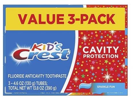 Зубная паста Crest Kids для защиты от кариеса, для детей от 2 лет. Упаковка из 3 шт по 130г.