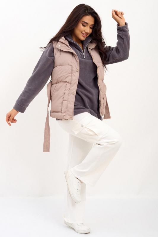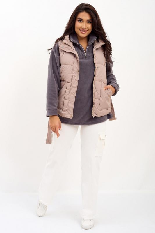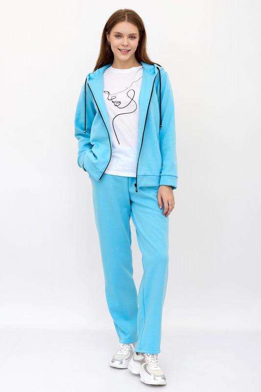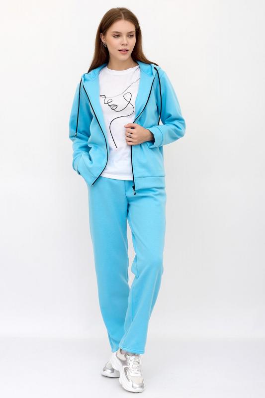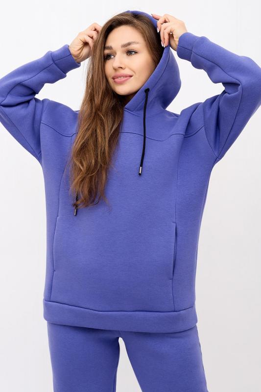 Модный женский костюм Фрея для теплых вечеров. Состоит костюм из толстовки худи с капюшоном, интересным воротничком стойкой и карманом кенгуру. Брюки высокой посадки с фиксацией на резинки обеспечат уют и удобство при носке. Костюм без сомнения станет для Вас самым любимым и незаменимым.
