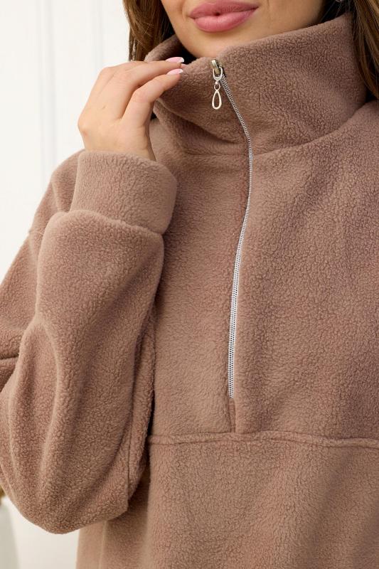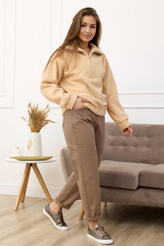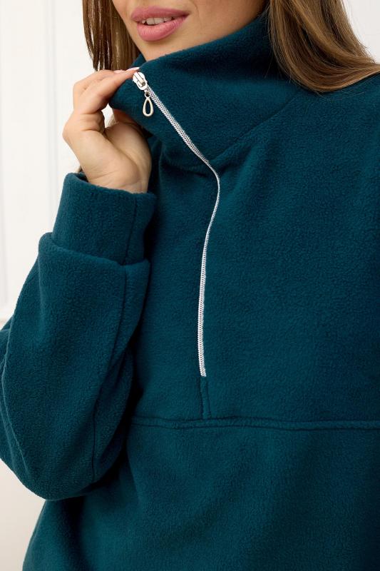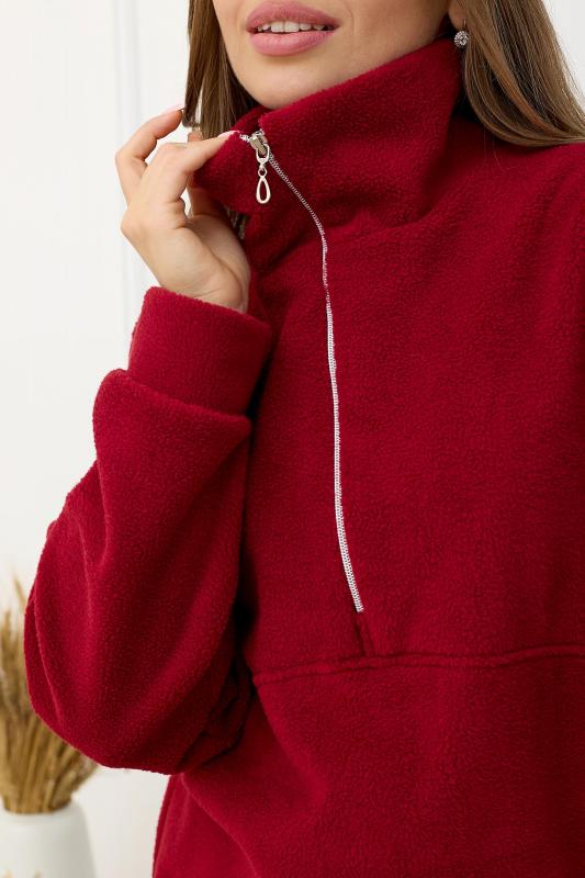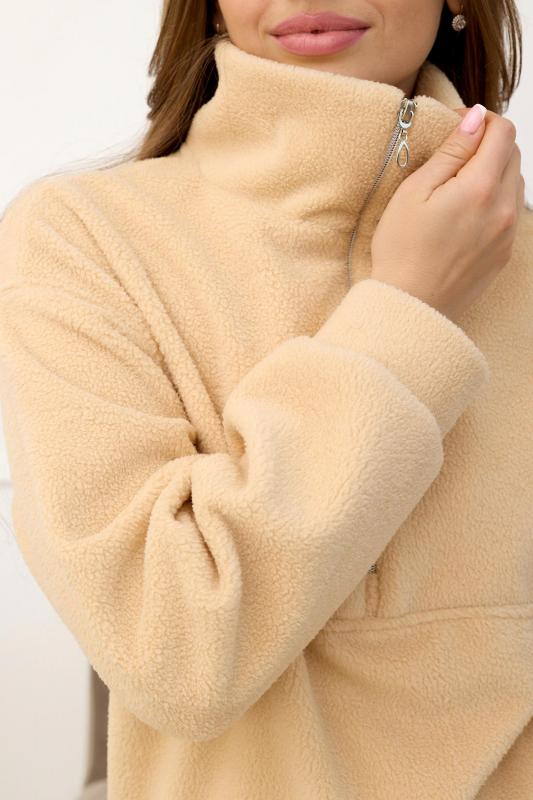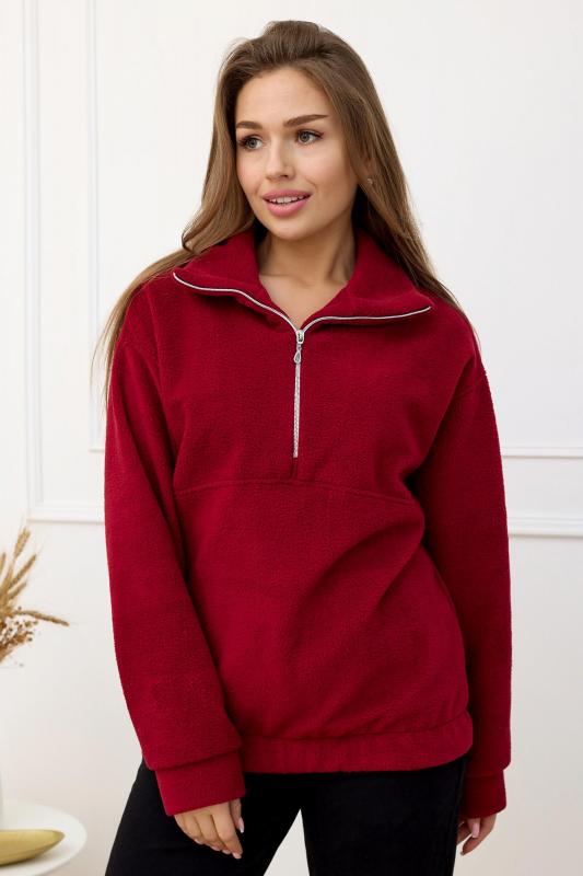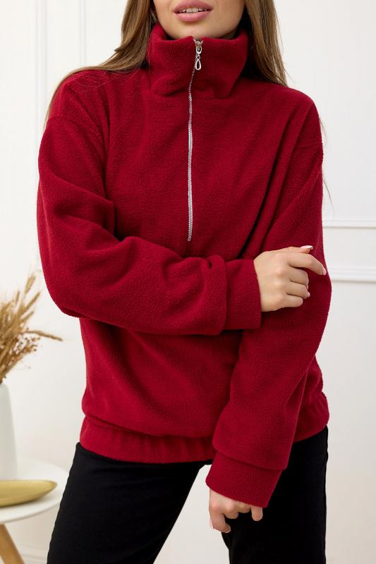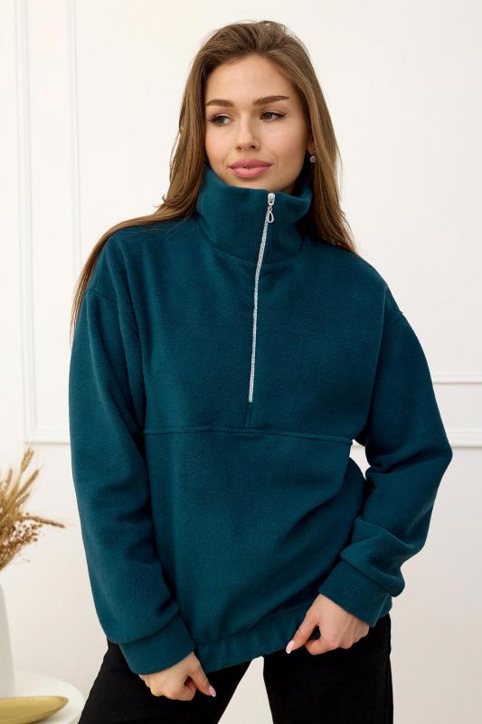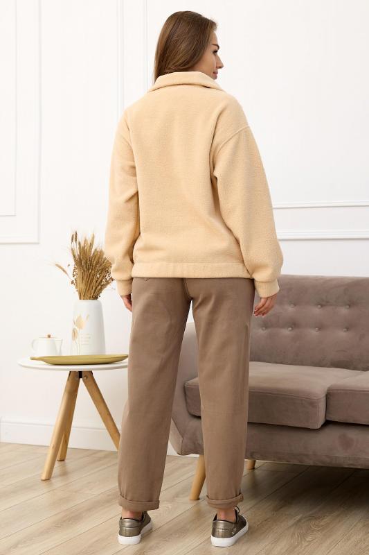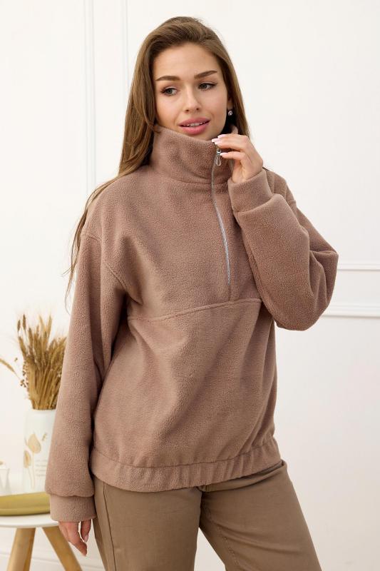 Стильная столствока с интересным дизаном. Модель свободного кроя со спущенной линией плеча. Рукав длинный с манжеткой. Горловой вырез круглый. По бокам толстовка небольшие разрезы.
