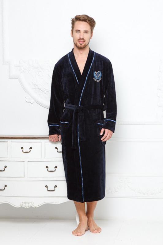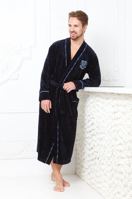 После душа приятней всего укутаться в тёплый и уютный велюровый халат. Модель халата «Ярослав» с поясом на запах и двумя накладными карманами. Длина изделия ниже колена. Запашные края, манжеты рукавов и карманы обработаны цветным обтачным кантом. На груди украшает принт. Такой халат пригодится каждому мужчине
