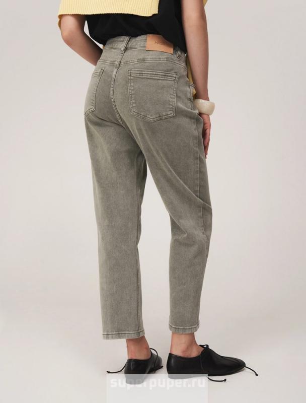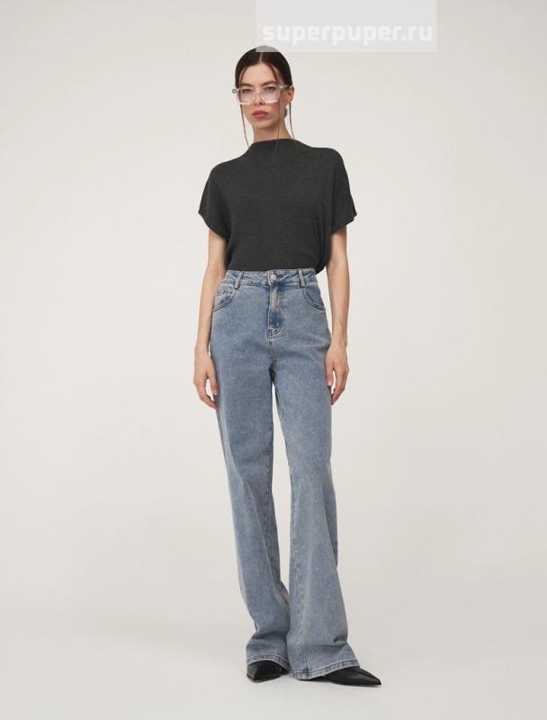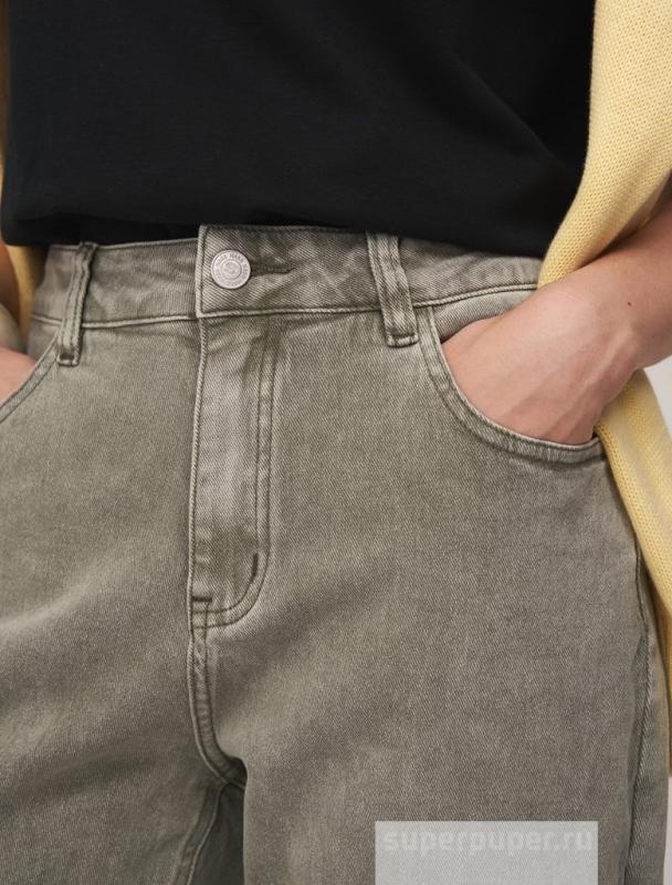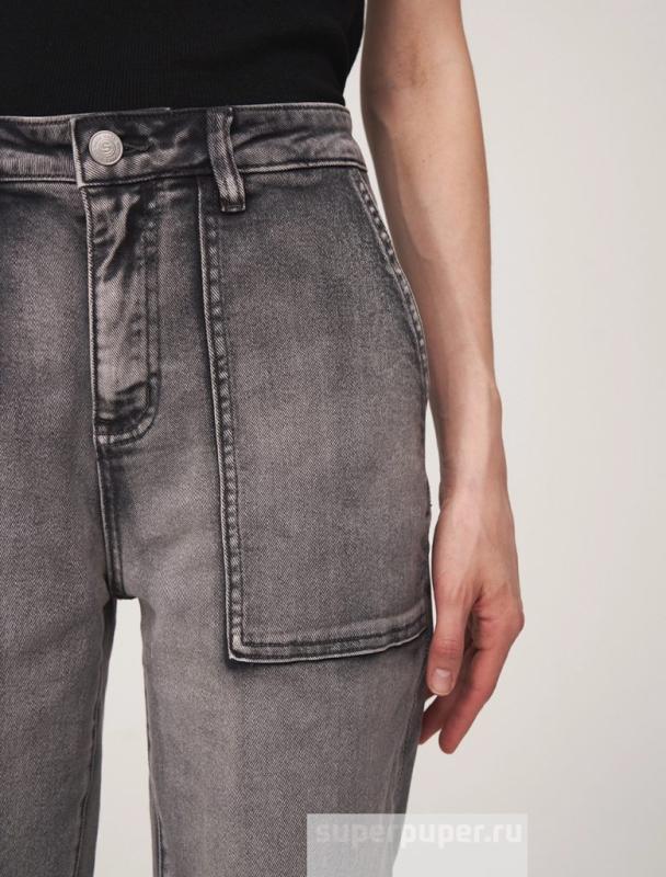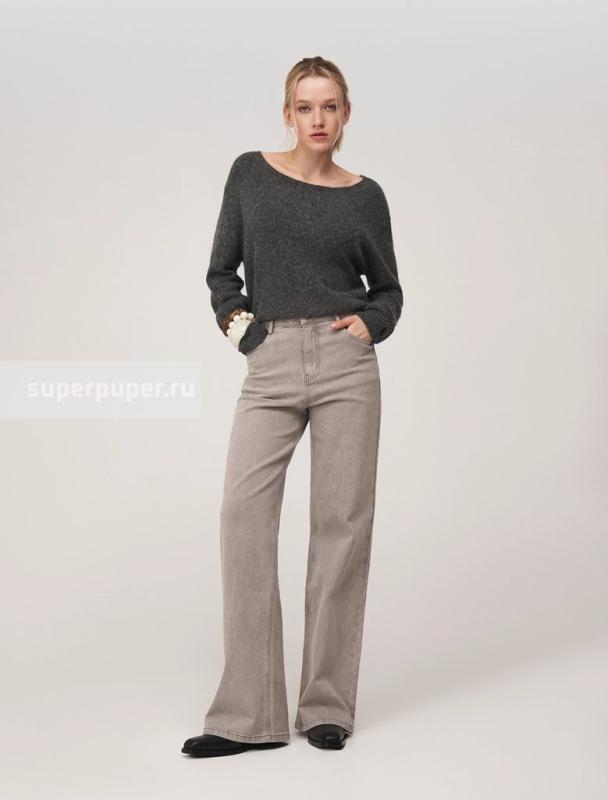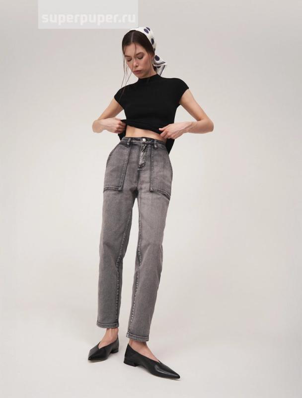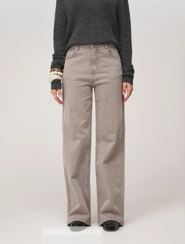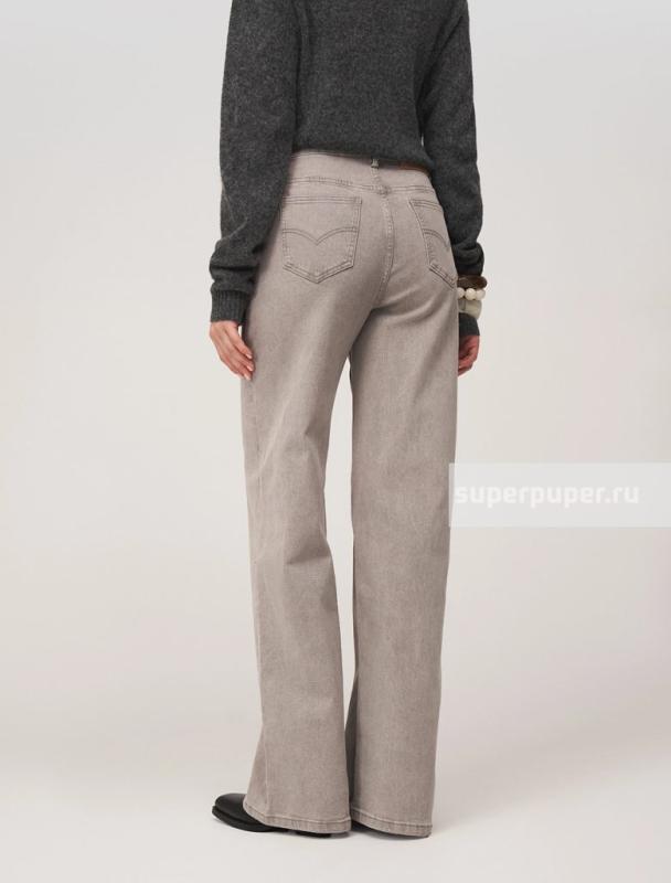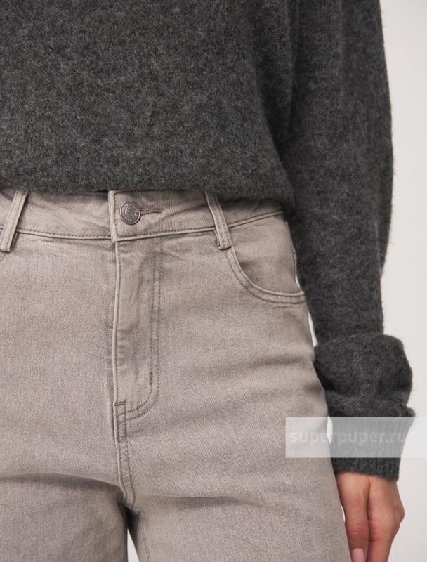 осень-зима 90% Хлопок, 10% Спандекс Джинсы широкие с посадкой на талии. По поясу расположены шлевки. По передней части изделия — гульфик, застежка на молнию и пуговицу. По бокам врезные карманы. Сзади кокетка, накладные карманы. Выполнены из хлопка (90%) и спандекса, что обеспечивает идеальную и, при этом, комфортную посадку. Представлены в светло-сером оттенке.