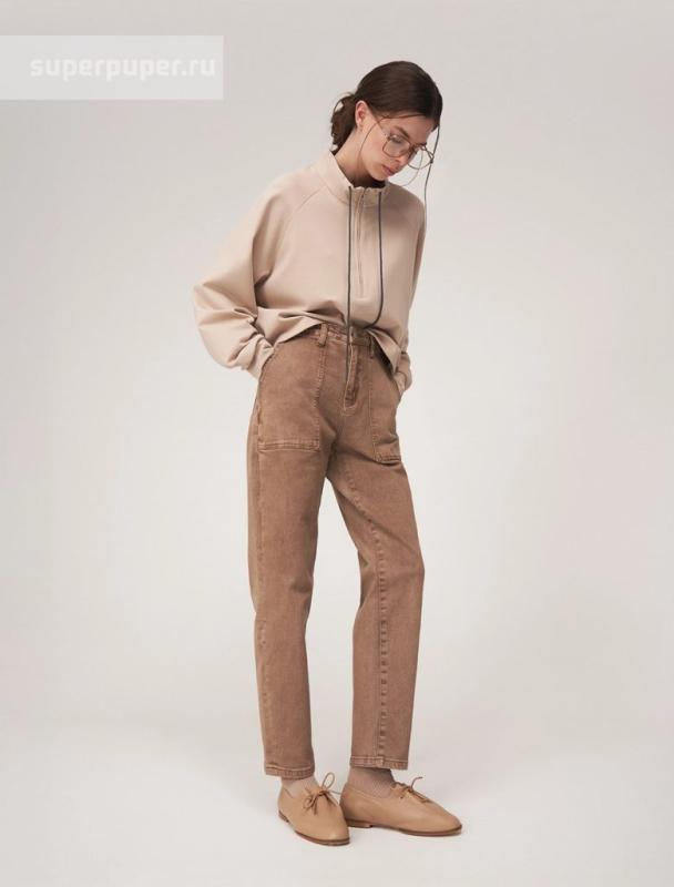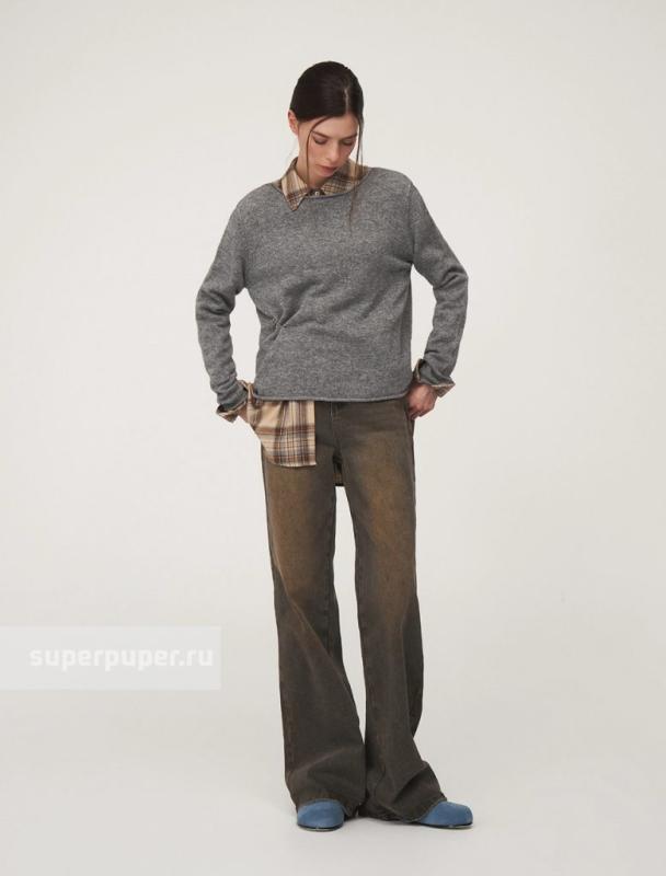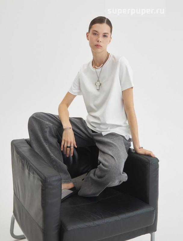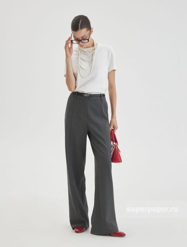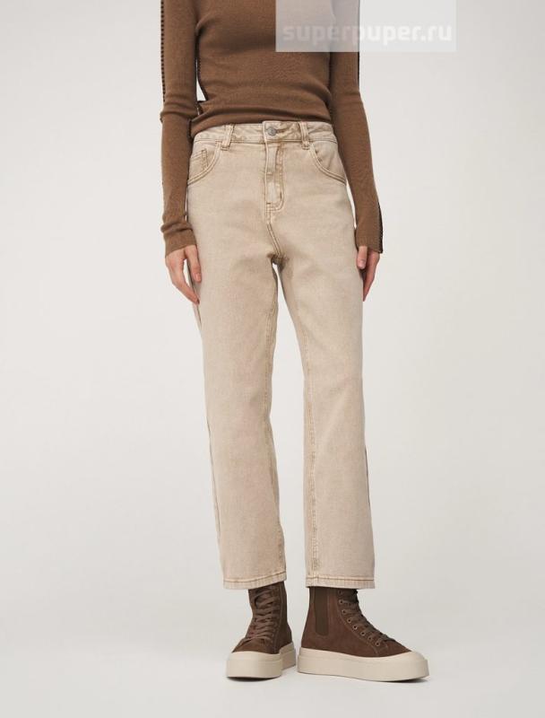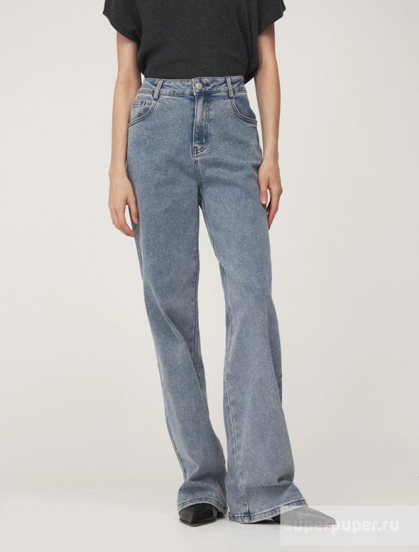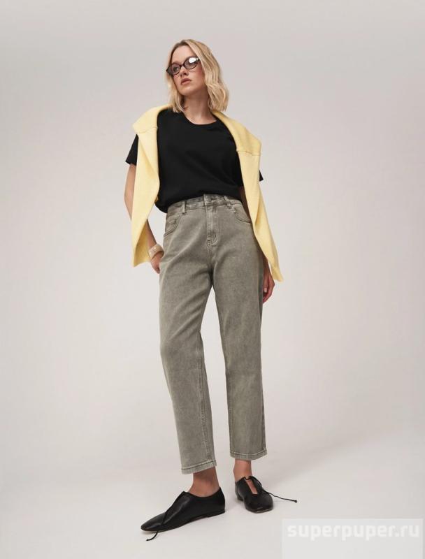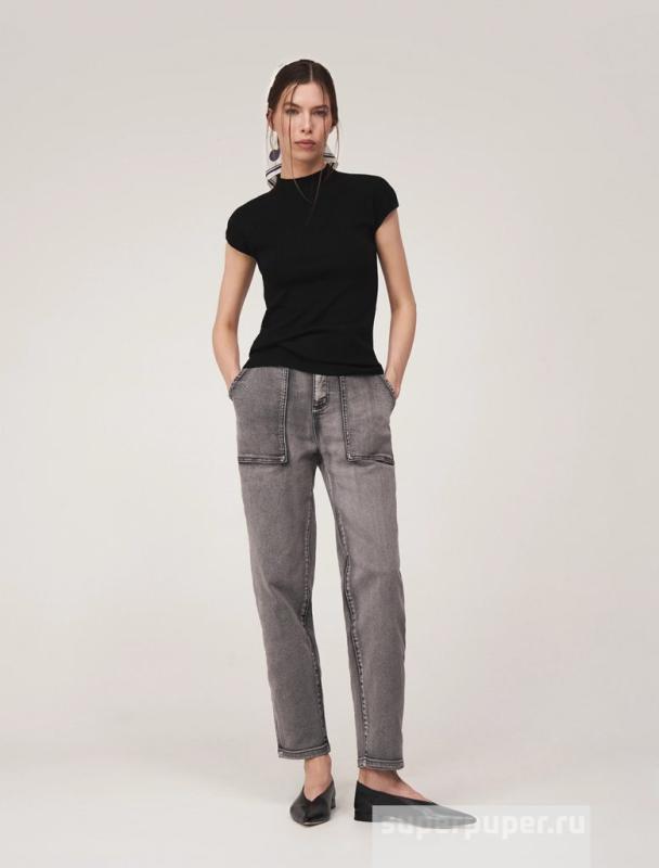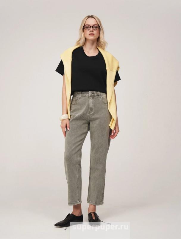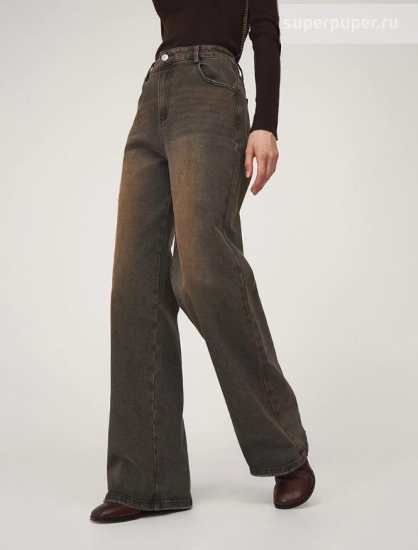 осень-зима 90% Хлопок, 10% Спандекс Джинсы широкие с посадкой на талии. По поясу расположены шлевки. По передней части изделия — гульфик, застежка на молнию и пуговицу. По бокам врезные карманы. Сзади кокетка, накладные карманы. Выполнены из хлопка (90%) и спандекса, что обеспечивает идеальную и, при этом, комфортную посадку. Представлены в светло-сером оттенке.