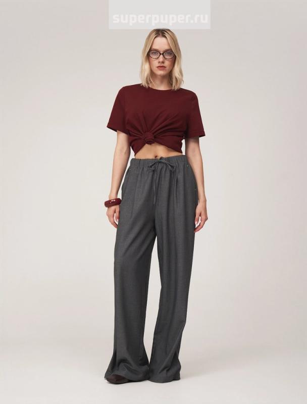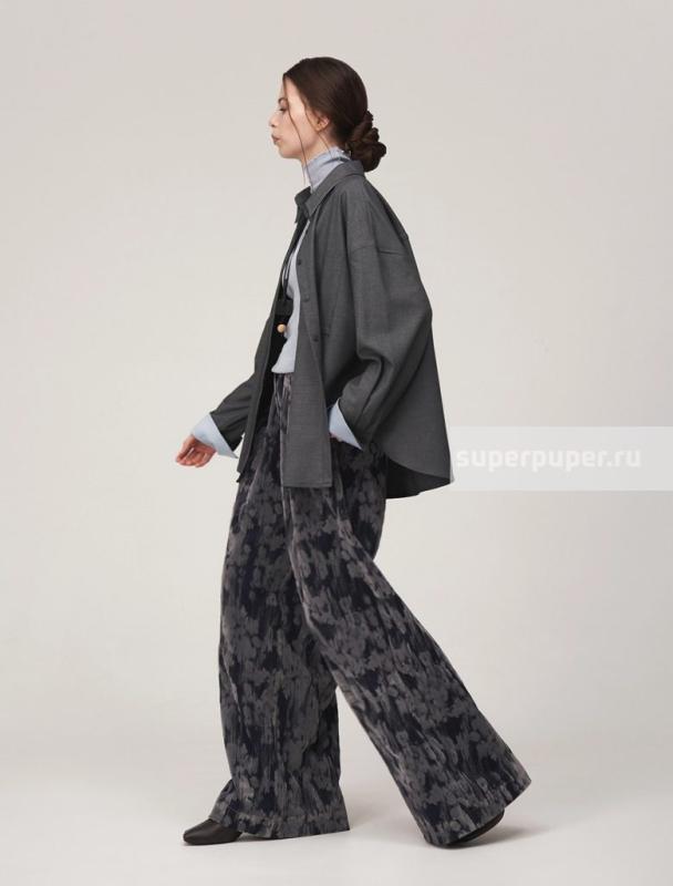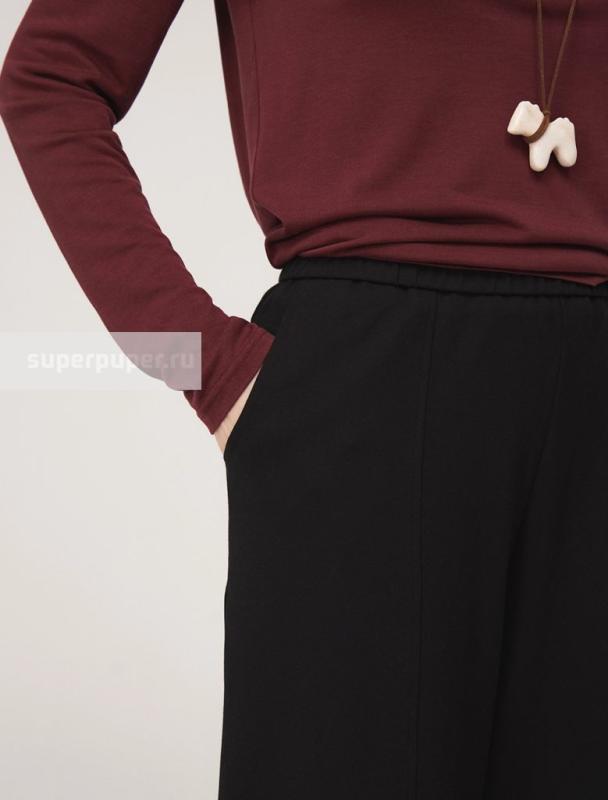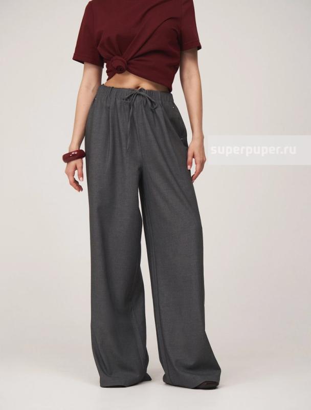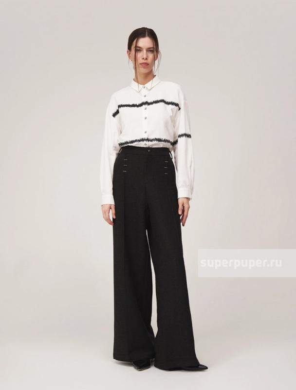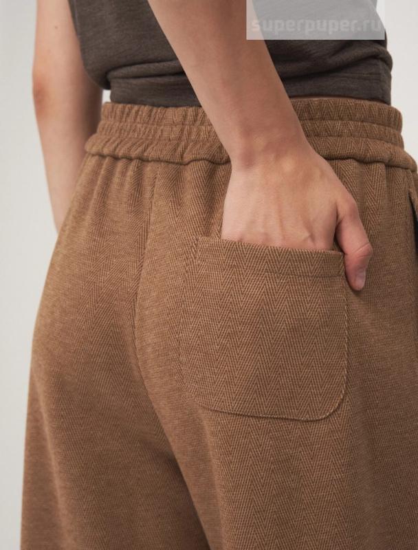 Видео: https-//hassfashion.ru/upload/iblock/31e/e6roprnd9arsnzbfqbnilxh39j0unjad.mp4 осень-зима 40% Хлопок, 25% Вискоза, 18% Лиоцелл, 10% Терилен, 4% Спандекс, 3% Кашемир Брюки широкие прямого силуэта. По поясу мягкая резинка и шнурок для затягивания. По бокам - карманы. Сзади, с правой стороны, накладной карман. Все карманы акцентированы контрастными закрепками.