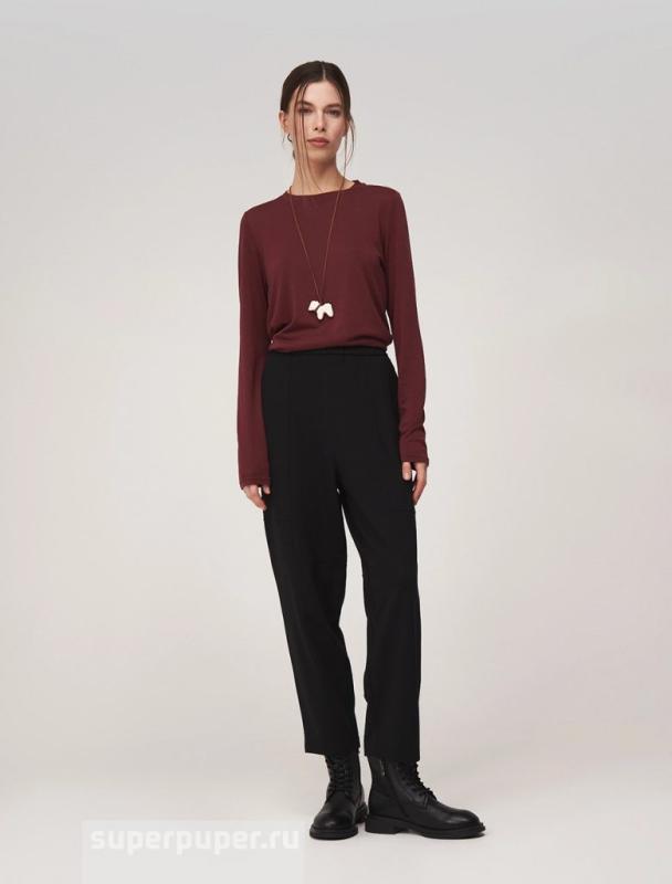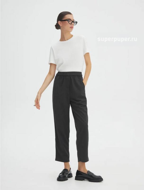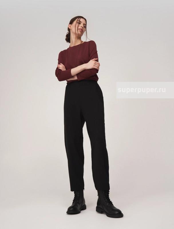 осень-зима 80% хлопок, 15% терилен, 5% спандекс. Брюки зауженного силуэта средней посадки. Акцентом изделия являются ультрамягкая ткань и резы с отсрочкой. По переду выполнена имитация гульфика и боковые карманы. Пояс на мягкой резинке, обеспечивает комфортную посадку.