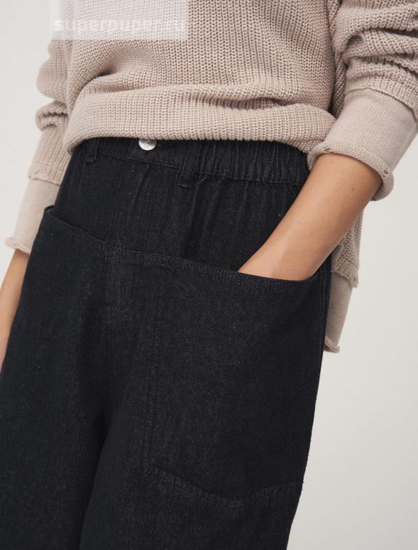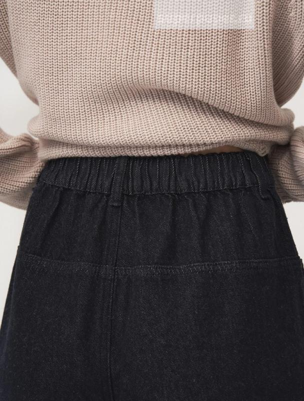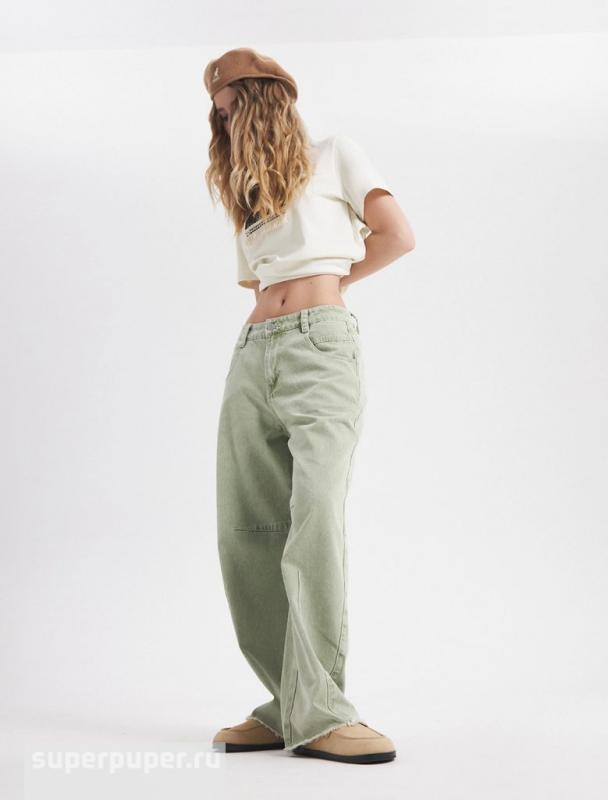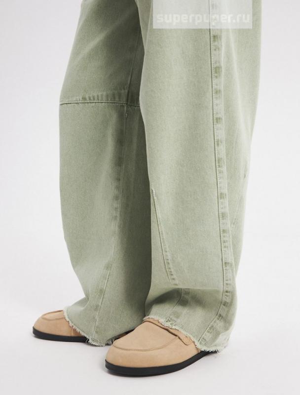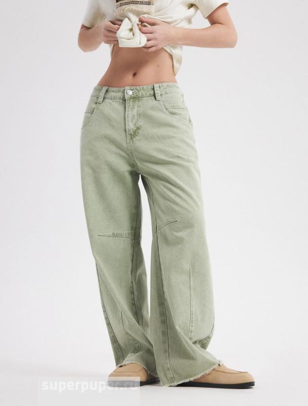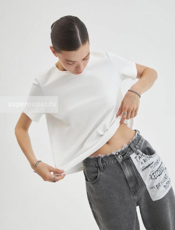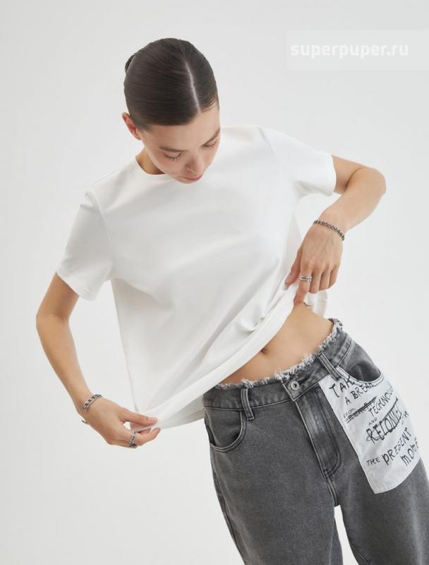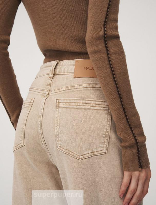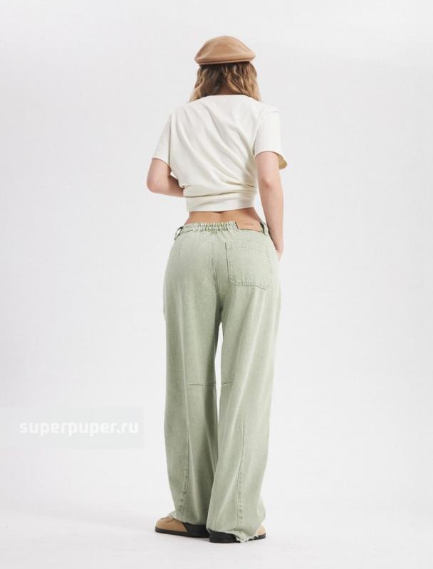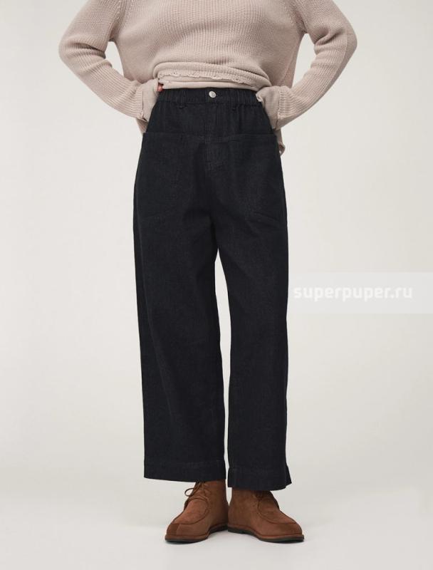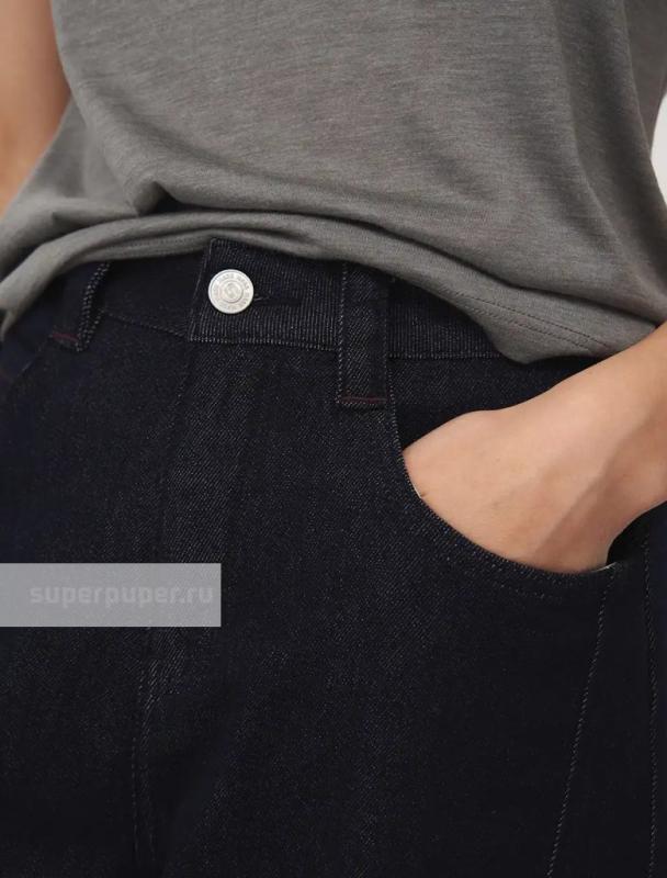 Видео: https-//hassfashion.ru/upload/iblock/b70/31myed547elnsaj2ncbzycgrwwaetr09.mp4 осень-зима 100% Хлопок Джинсы широкие, укороченные, прямого силуэта с посадкой на уровне талии. По всему поясу расположены шлевки и встроена эластичная резинка. По передней части изделия — классический гульфик и застежка на пуговицу. По бокам врезные карманы. По задней части — кокетка. Выполнены из 100% хлопка. Представлены в трендовом «сыром» дениме.
