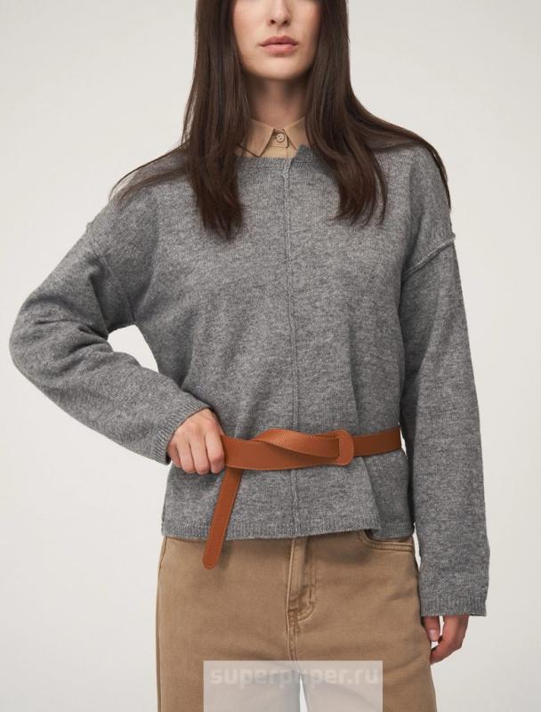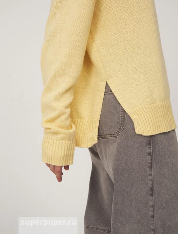 Видео: https-//hassfashion.ru/upload/iblock/502/0go2b3qnzvmfojheyksvs3a3vdwhfw4c.mp4 осень-зима 50% Шерсть, 30% Хлопок, 20% Полиэстер Джемпер регулярного силуэта со спущенной линией плеча. Круглая горловина имеет асимметричный эффект. По передней части, по середине — вертикальный рез, визуально удлиняющий силуэт. Выполнен из шерсти и хлопка с добавлением полиэстера.