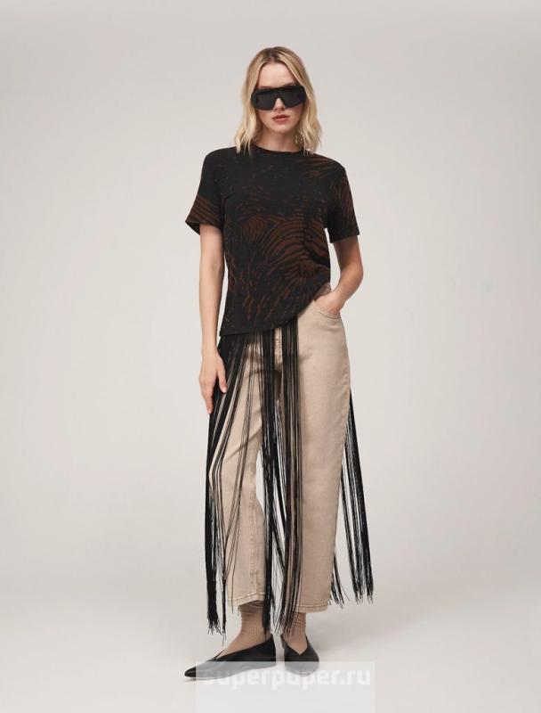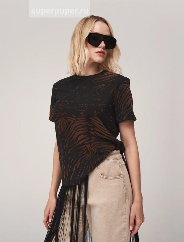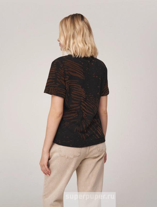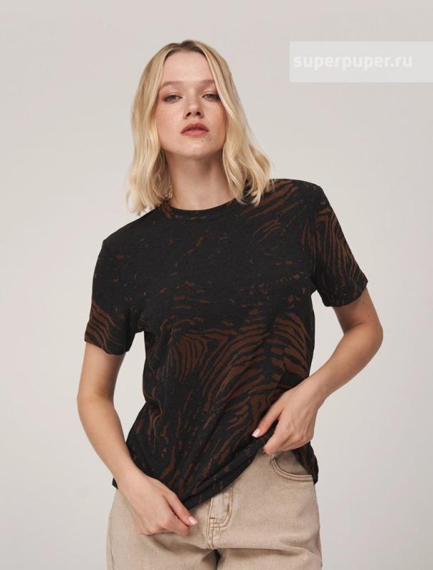 Видео: https-//hassfashion.ru/upload/iblock/bdd/jy9759krdtbwhvx6i44rzo5dmz9cl475.mp4 осень-зима 70% Хлопок, 25% Вискоза, 5% Спандекс Футболка прямого силуэта с регулярной горловиной. Акцентом изделия является анималистичный флоковый принт. Ткань – хлопок и вискоза с небольшим добавлением спан-декса, что продлевает срок эксплуатации изделия.