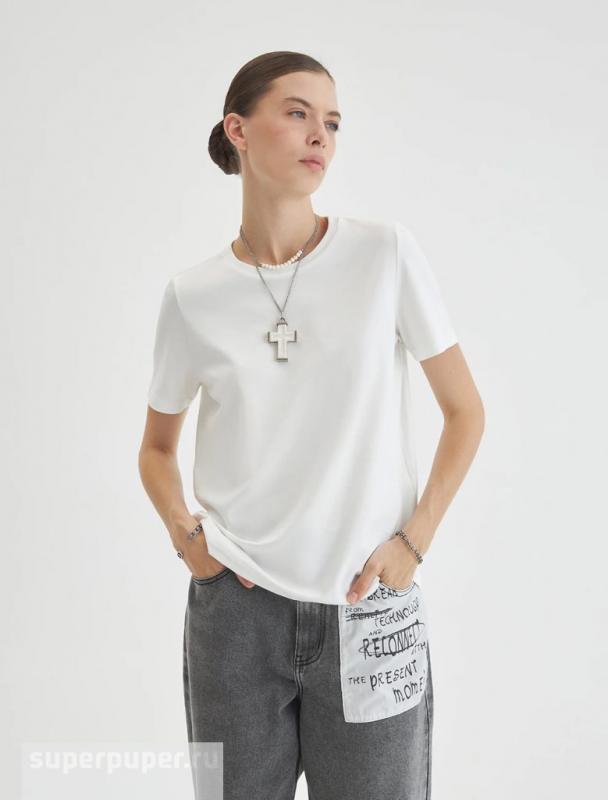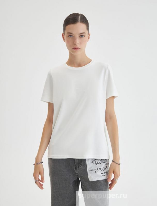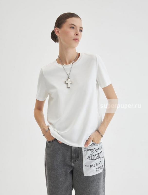Видео: https-//hassfashion.ru/upload/iblock/081/5bj3f97kfk1uce1qz2ig6w4odqvqmdio.mp4 осень-зима 70% Хлопок, 20% Вискоза, 10% Эластан Футболка прямого силуэта с регулярной горловиной и короткими втачными рукавами. Ткань — хлопок и вискоза с добавлением эластана, что продлевает срок эксплуатации изделия. Выполнена в оттенках коллекции.