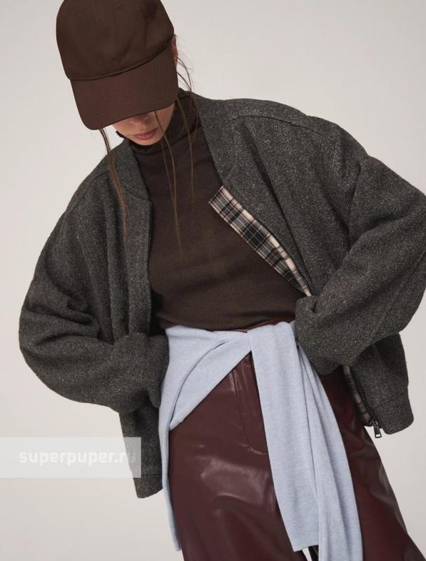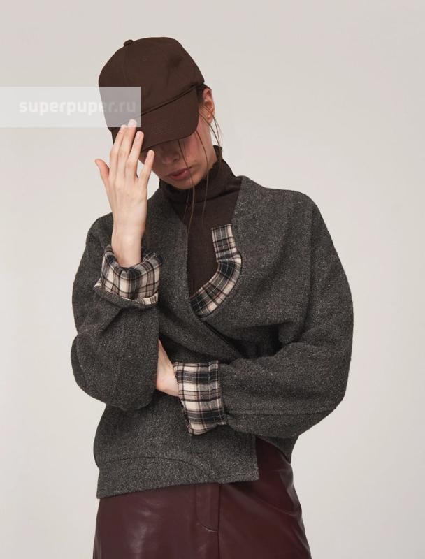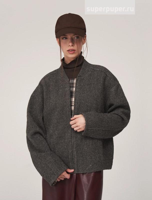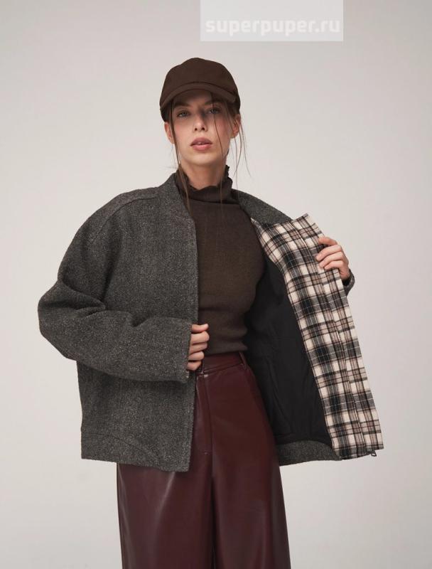 Видео: https-//hassfashion.ru/upload/iblock/13c/40xuamb0aaftca7oo6ldqtphnhpiowov.mp4 осень-зима А: 50% Шерсть, 25% Район, 25% Терилен В:100% Хлопок Бомбер О-образоного силуэта, со спущенной линией плеча. По передней части изделия застежка на молнию. Внешняя часть изделия выполнена из шерсти с добавлением района и терилена. С внутренней стороны – хлопковая подкладка в шотландскую клетку.