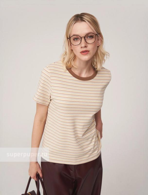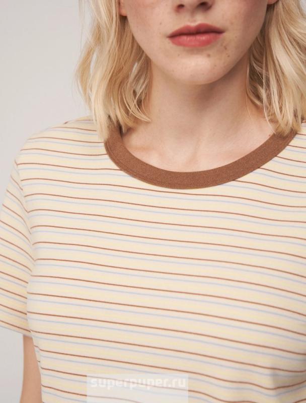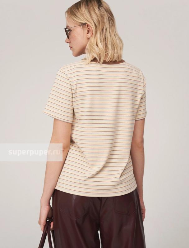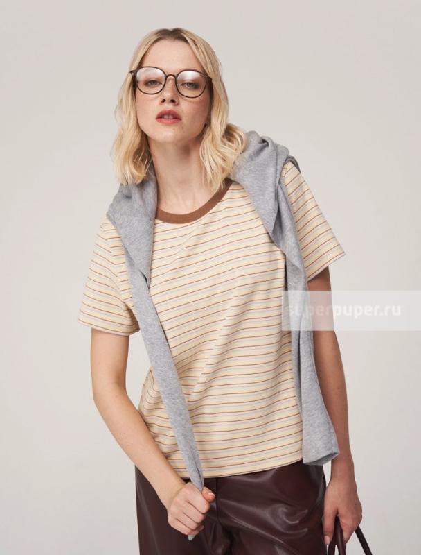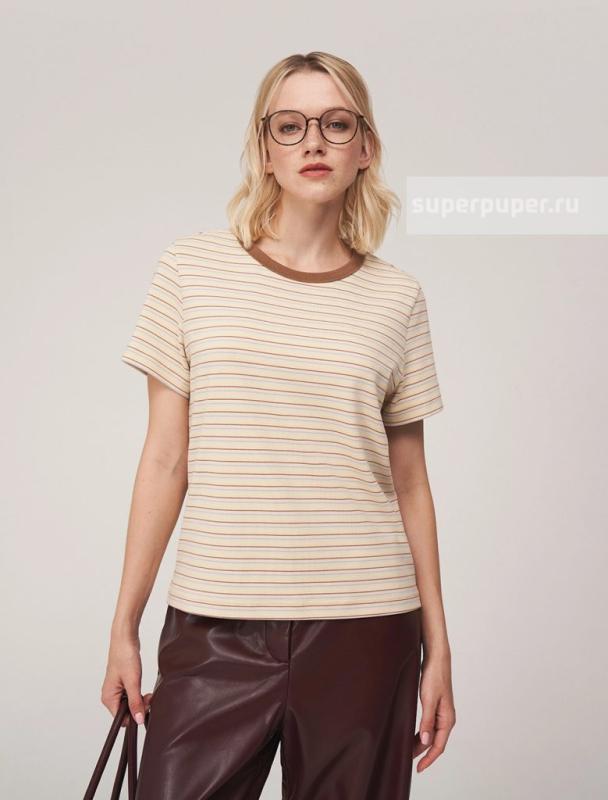 Видео: https-//hassfashion.ru/upload/iblock/a8d/e059yzrsgbnai75zan0rcrxrpdauflq9.mp4 осень-зима 70% Хлопок, 25% Вискоза, 5% Спандекс Футболка прямого силуэта с регулярной контрастной горловиной. Ткань – хлопок и вискоза с добавлением спандекса, что продлевает срок эксплуатации изделия. Цвета полосок выполнены в оттенках коллекции.