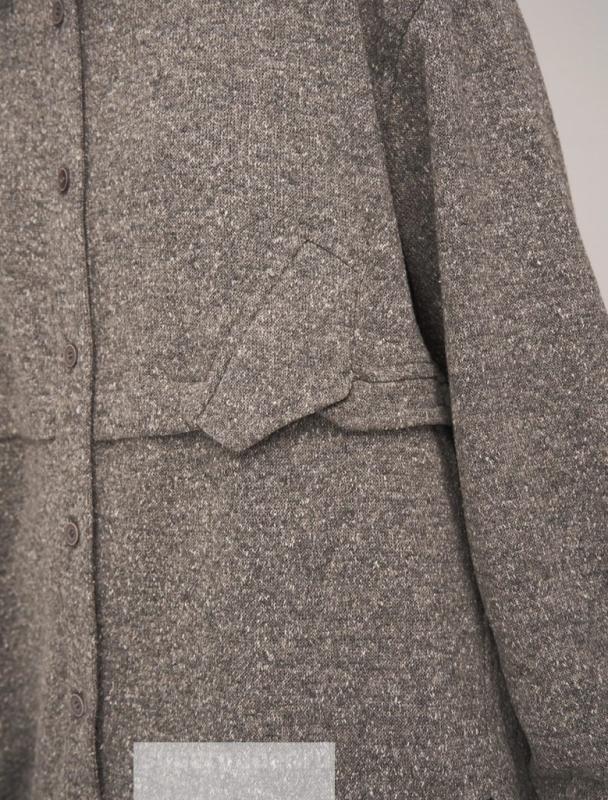 Видео: https-//hassfashion.ru/upload/iblock/3d0/5l7ms3dqzsu1wfa1c4ctq6yr7j5f99ce.mp4 осень-зима 100% Шерсть Однобортное полупальто О-силуэта со спущенной линией плеча и воротником. По передней части, на груди, с левой стороны - карман, а по середине планка с застежкой на пуговицы. Манжеты также застегиваются на пуговицы. Выполнено из 100% шерсти. Представлено в благородном сером оттенке.