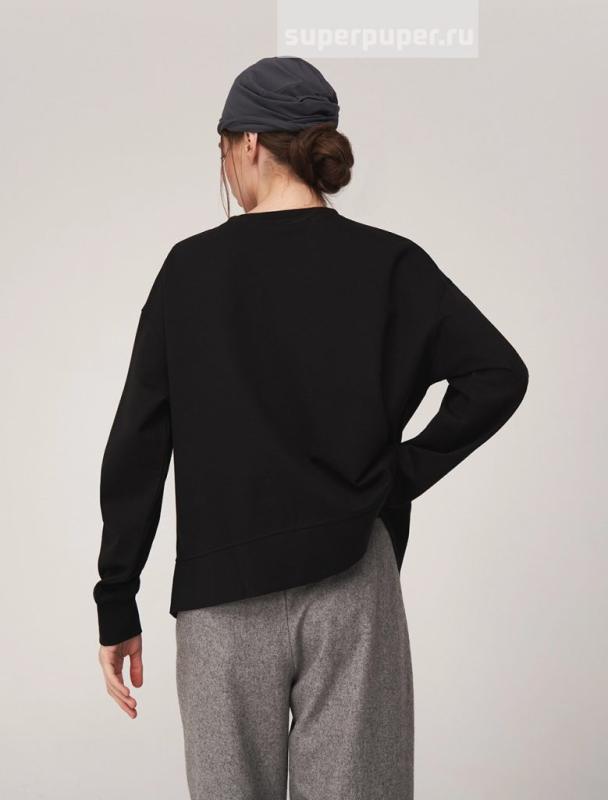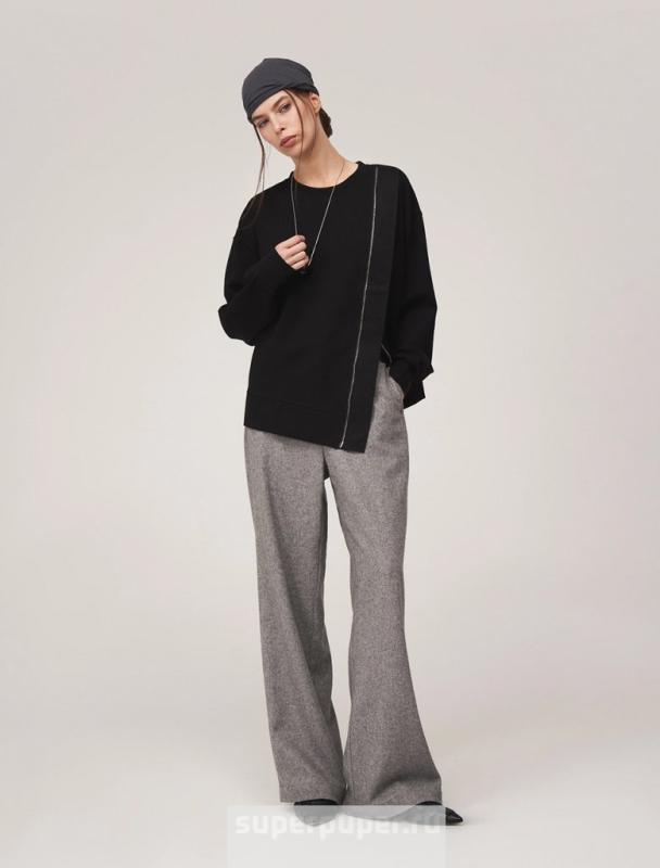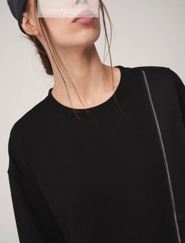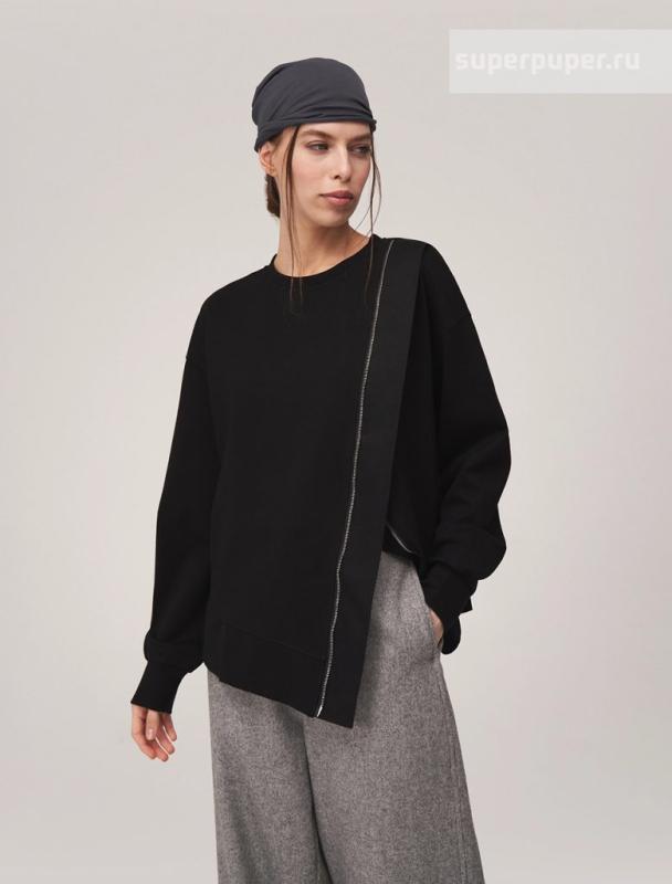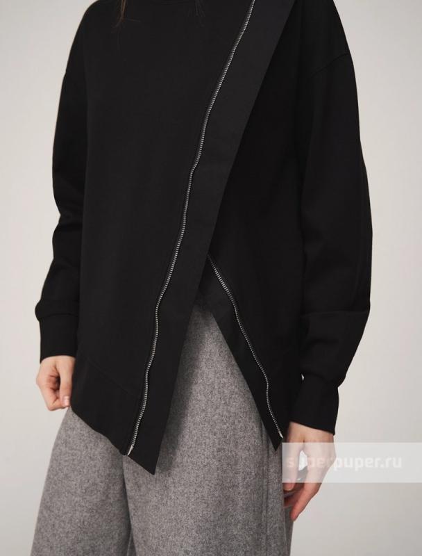 В: 100% Хлопок Свитшот регулярного силуэта с круглой горловиной и спущенной линией плеча. По передней части изделия — имитация запаха с планкой из хлопка, вдоль которой расположена декоративная молния без пуллера. На манжетах и по низу — эластичная рибана. Ткань основы выполнена из хлопка с добавлением спандекса.