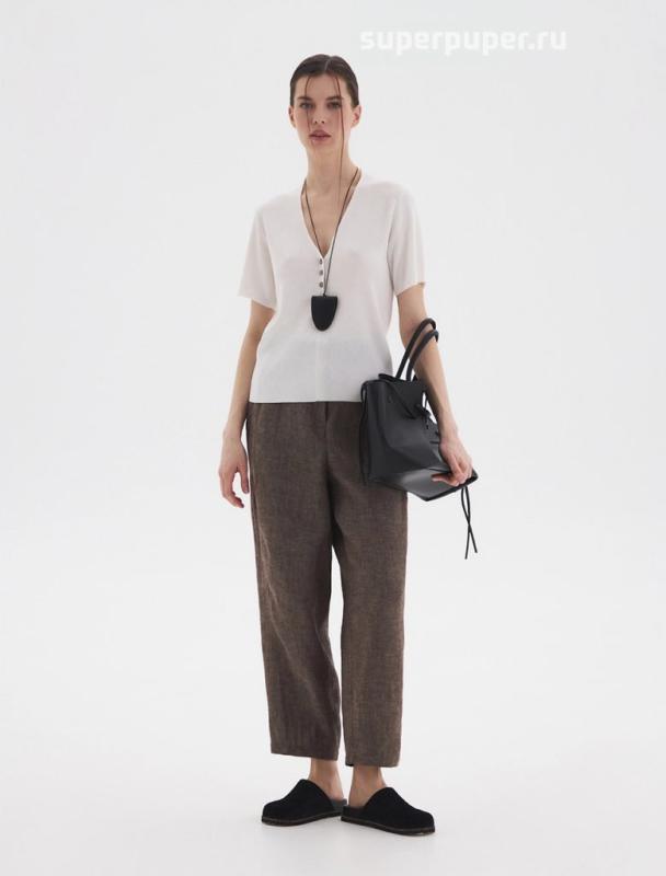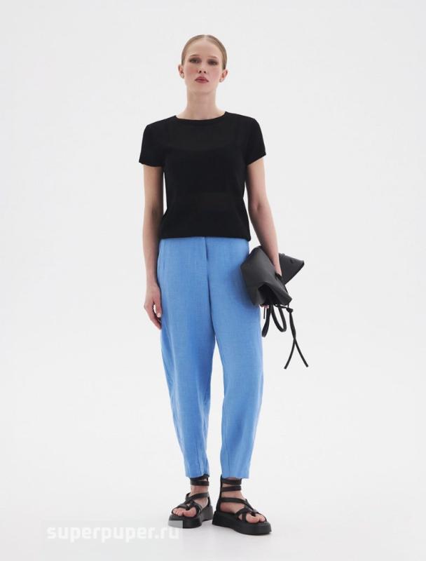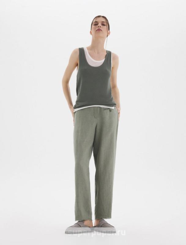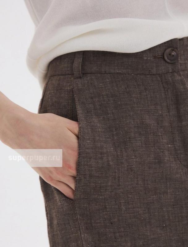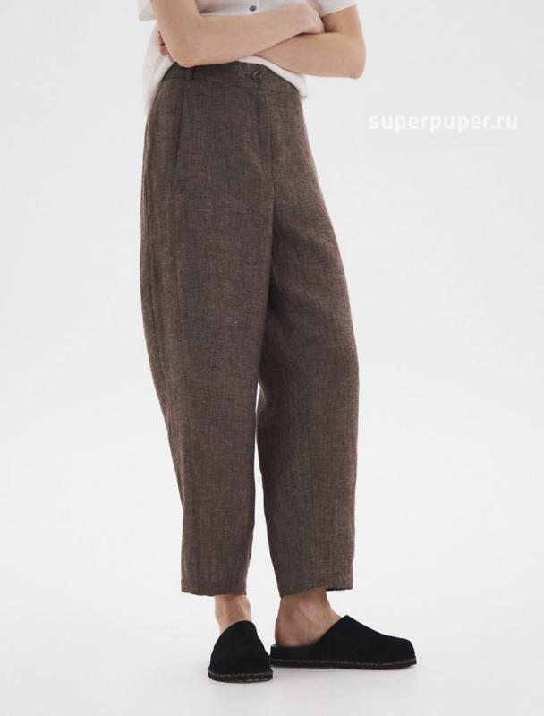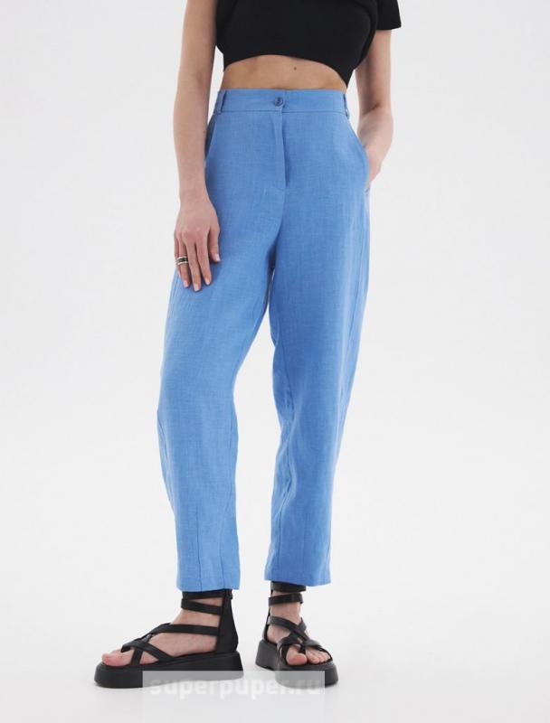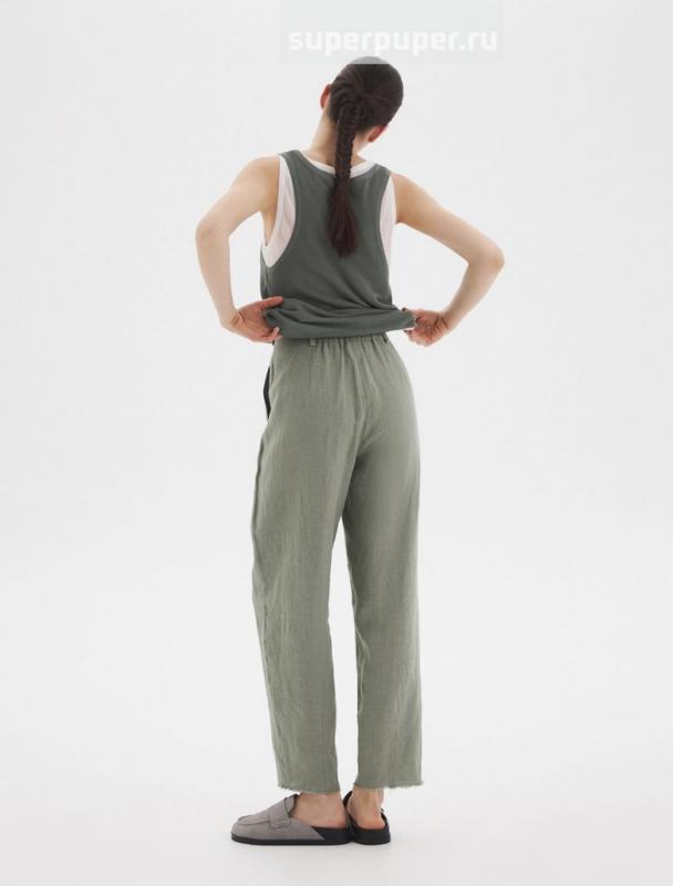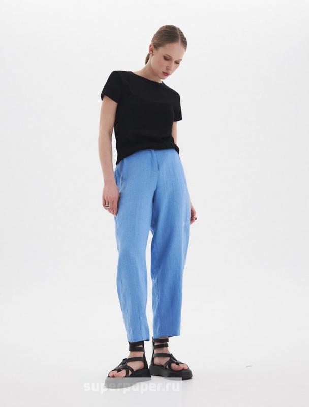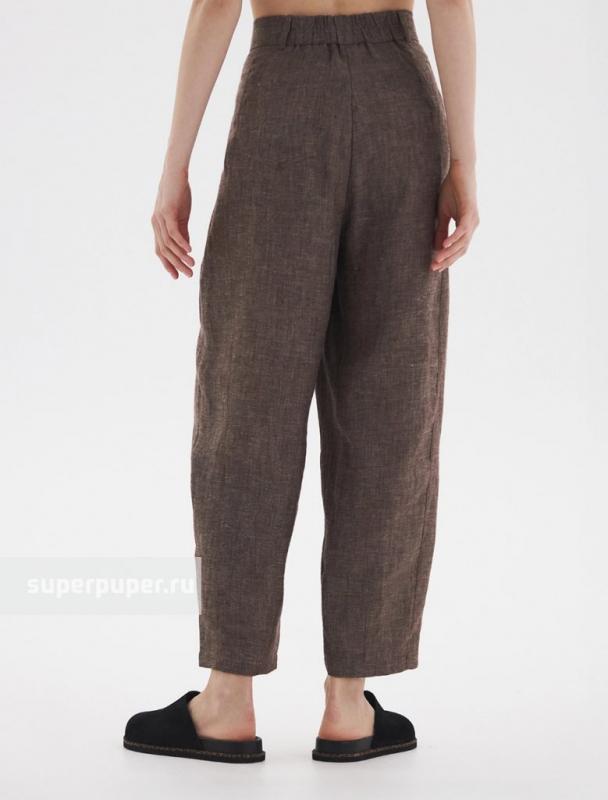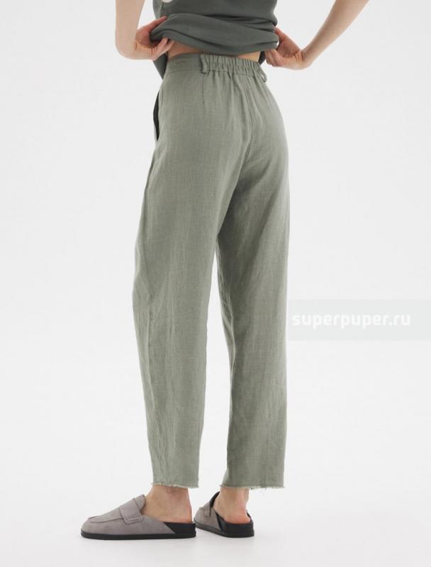 Видео: https-//hassfashion.ru/upload/iblock/f26/mn8yow3ae0dylw7p5istfb36fosj0y5a.mp4 весна-лето 100% Лен Брюки зауженного к низу силуэта, с поясом со шлевками. По передней части изделия расположен гульфик с застежкой на молнию и пуговицу. На задней части брюк, с левой стороны расположен карман. По поясу резинка для более комфортной посадки.