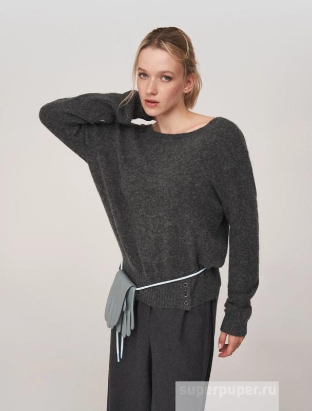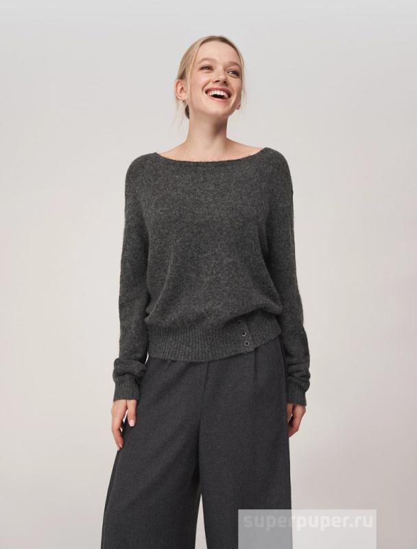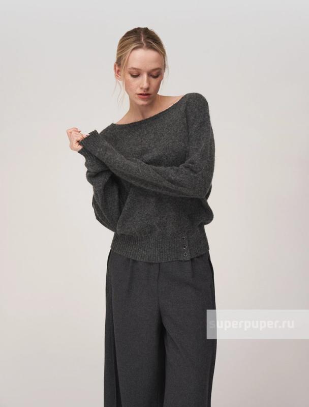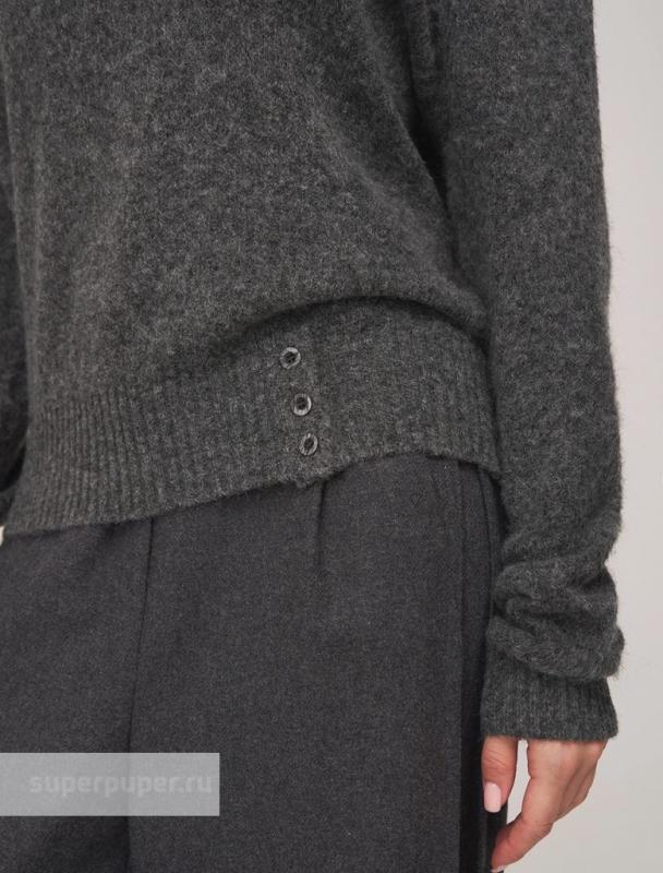 Видео: https-//hassfashion.ru/upload/iblock/fab/j61dapbamwqpvly7pkoaxzsp4k2t4kr4.mp4 осень-зима 40% Шерсть, 30% Хлопок, 20% Полиэстер, 10% Махер Джемпер регулярного силуэта с горловиной по типу «лодочка» и спущенной линией плеча. По низу изделия и рукавам — риб. С левой стороны, перпендикулярно линии низа, расположены декоративные пуговицы. Выполнен из шерсти и хлопка с добавлением полиэстера и махера.