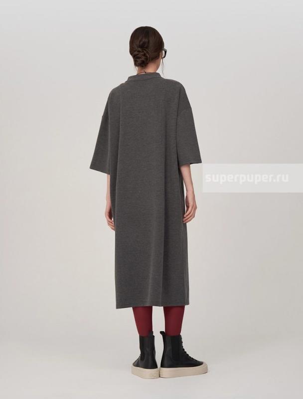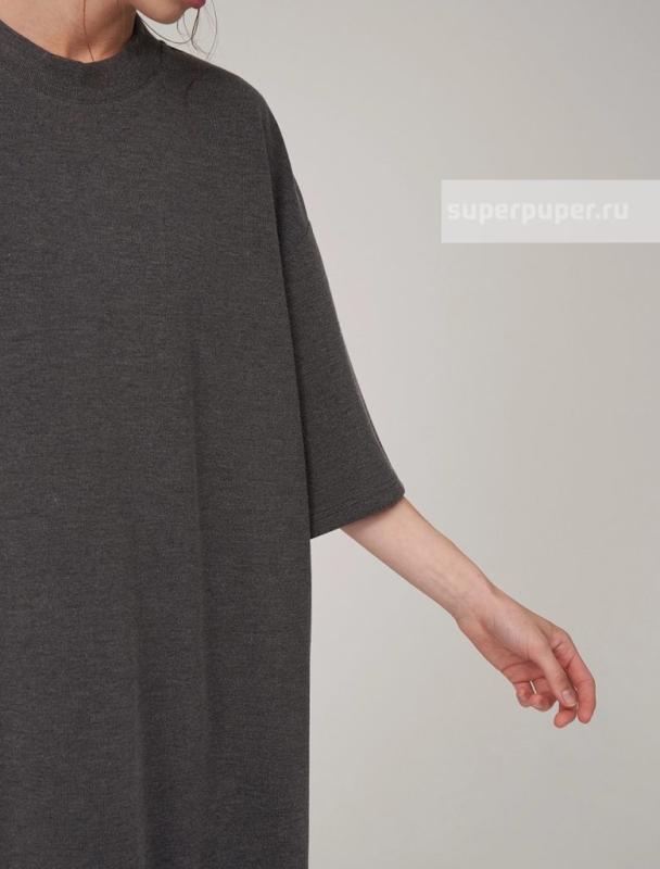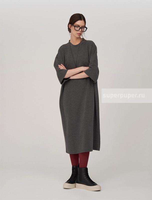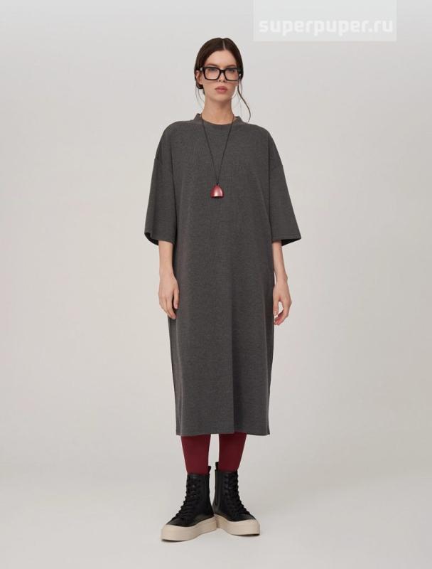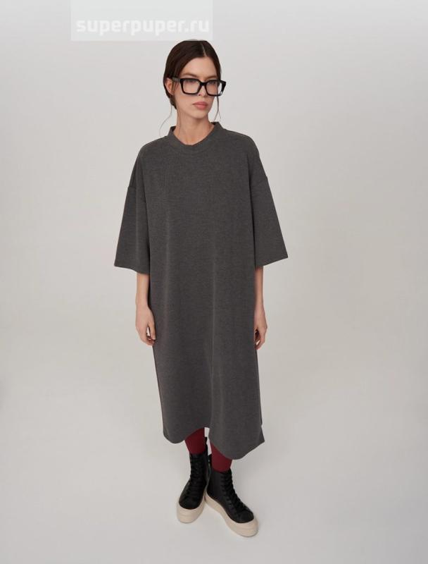 Видео: https-//hassfashion.ru/upload/iblock/eb3/clayrnfy3haqzidux5iidisrpoeatcn4.mp4 осень-зима 95% Хлопок, 5% Спандекс Платье-футболка силуэта oversize с круглой горловиной. Линия плеча спущена. Платье длины миди, рукава 3/4. Выполнено из хлопка с добавлением спандекса. Представлено в сером оттенке.