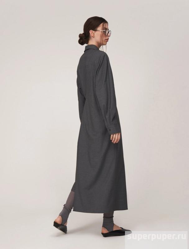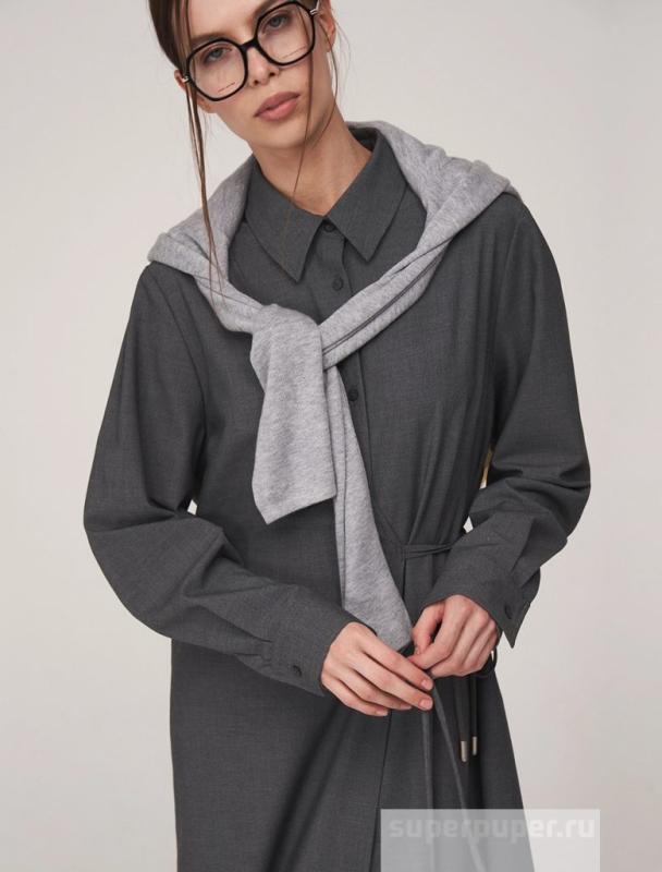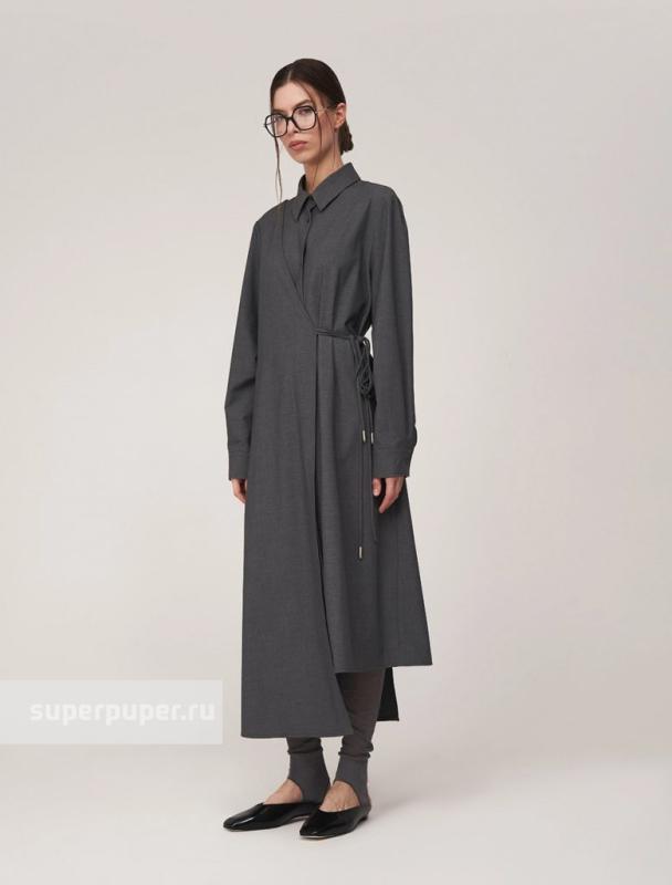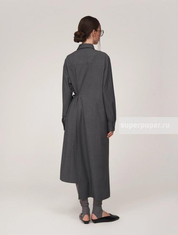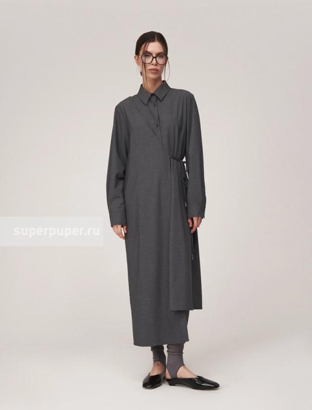 Видео: https-//hassfashion.ru/upload/iblock/672/nkq0ard8jzyfxzhb3cnxgkti9abk4wfs.mp4 осень-зима 40% Хлопок, 25% Вискоза, 18% Лиоцелл, 10% Терилен, 4% Спандекс, 3% Кашемир Платье-рубашка асимметричное, длины миди и макси. По передней части изделия отложной воротник и планка с застежкой на пуговицы. С правой стороны — полотно, закрепленное в плечевом шве и оснащенное шнурками для акцентирования талии.