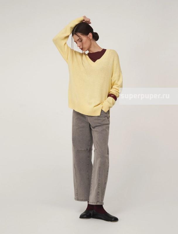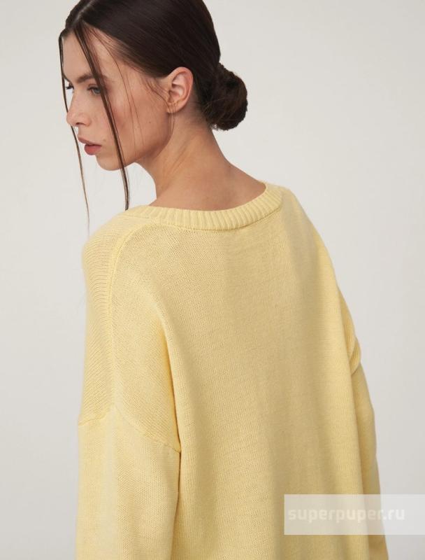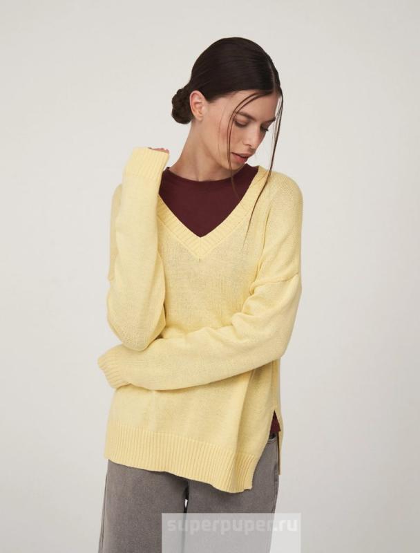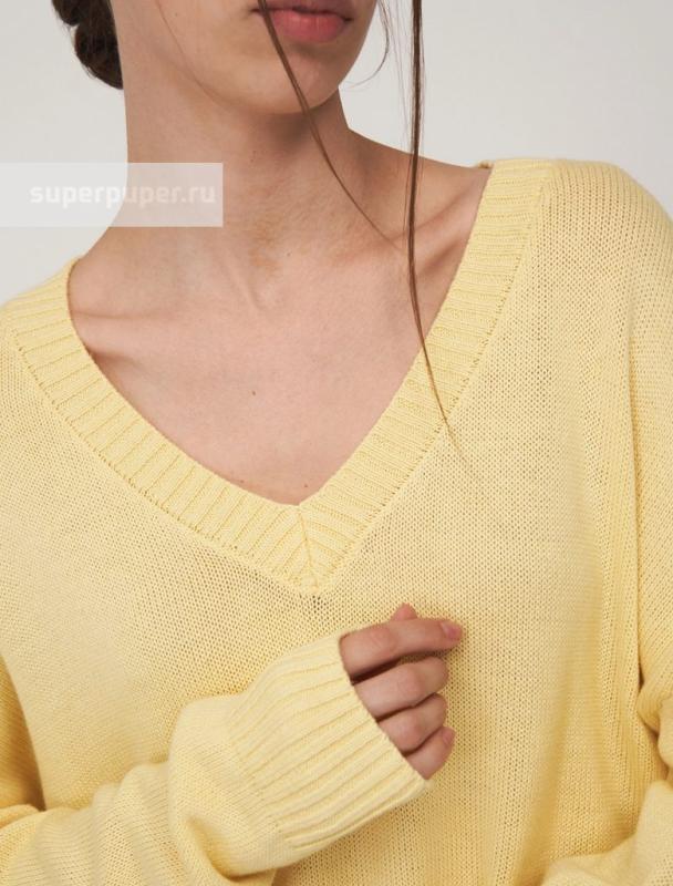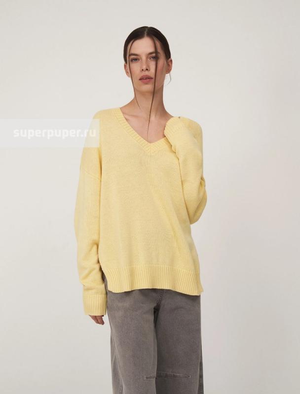 Видео: https-//hassfashion.ru/upload/iblock/916/wosscliove7tj8ojdk38wkbn65qmxy41.mp4 осень-зима 60% Хлопок, 35% Акрил, 5% Кашемир Вязаный джемпер регулярного силуэта со спущенной линией плеча и V-образной горловиной. Выполнен из хлопка, кашемира и акрила, обеспечивающих мягкость, комфорт и долговечность. Представлен в двух трендовых оттенках – желтый и бордовый.