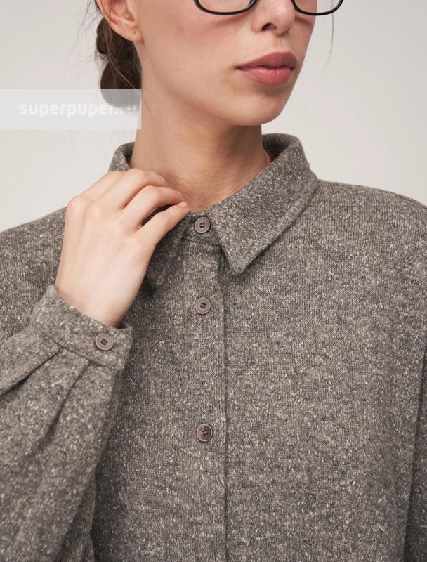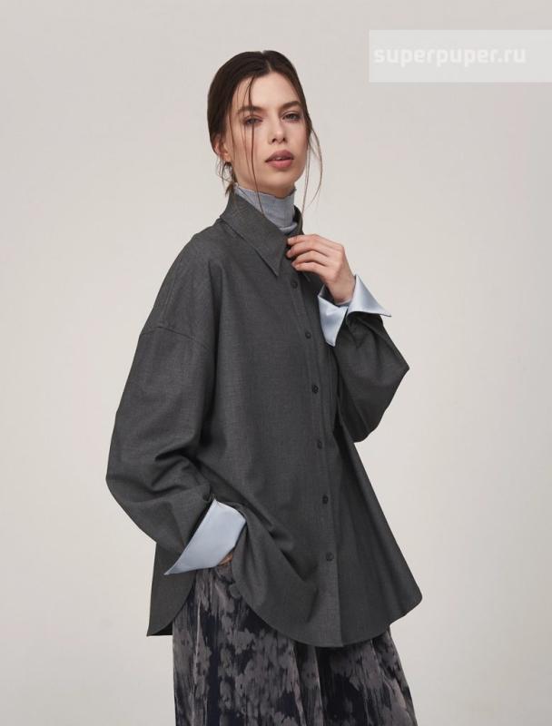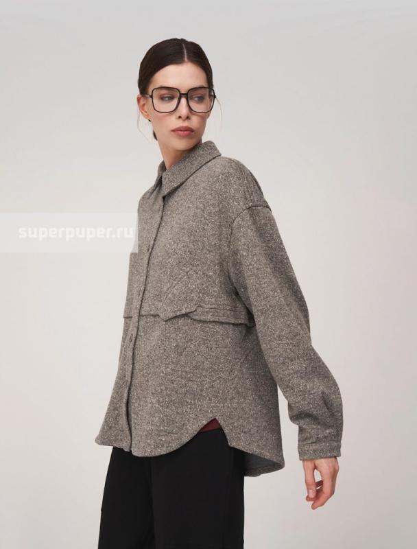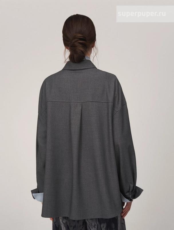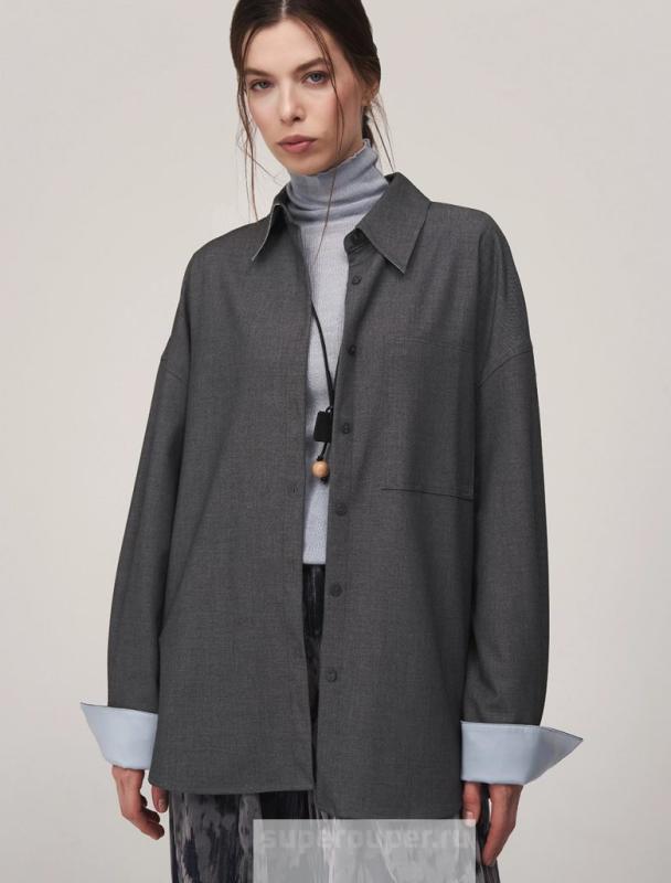 Видео: https-//hassfashion.ru/upload/iblock/1eb/em7s7abklb7dppw0pcgxe9nbvbw98dix.mp4 осень-зима 60% Хлопок, 30% Акрил, 10% Полиэстер Рубашка регулярного силуэта со спущенной линией плеча. По горловине отложной воротник. По передней части планка с застежкой на пуговицы. Сзади кокетка и складки на уровне лопаток. На уровне талии горизонтальная планка, на которой, с левой стороны, по диагонали расположен декоративный карман с клапаном. Манжеты застегиваются на пуговицы. Выполнена из хлопка (60%), акрила и полиэстера. Представлена в сером меланже.