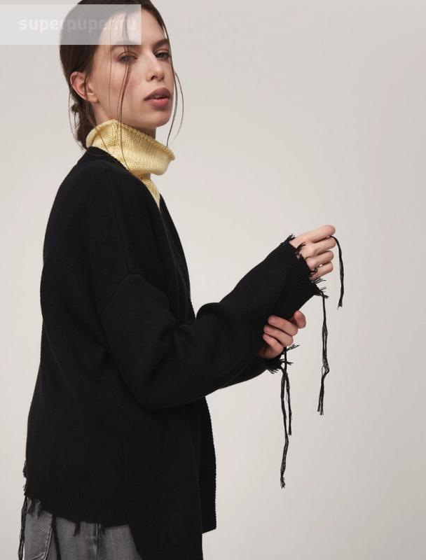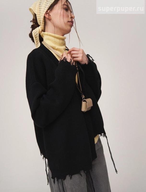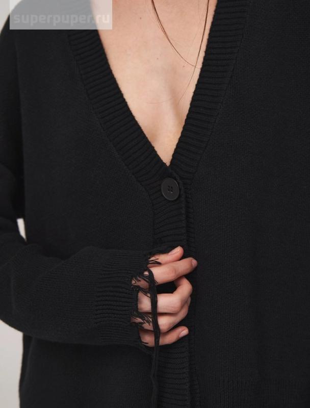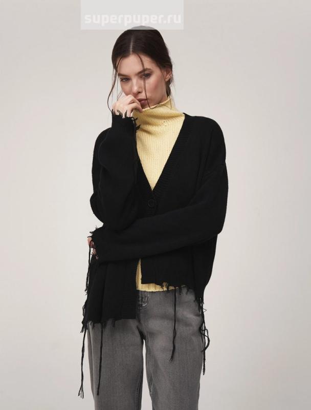 Видео: https-//hassfashion.ru/upload/iblock/ade/vwybquemo4336v8t9dz7facy1q7ctmq4.mp4 осень-зима 60% Хлопок, 35% Акрил, 5% Шерсть Кардиган oversize силуэта с асимметричным низом. По передней части изделия V-образный вырез и застежка на пуговицу. По низу кардигана рваный гранжевый эффект. Выполнен из хлопка и акрила с добавлением шерсти, что обеспечивает тепло и комфорт.