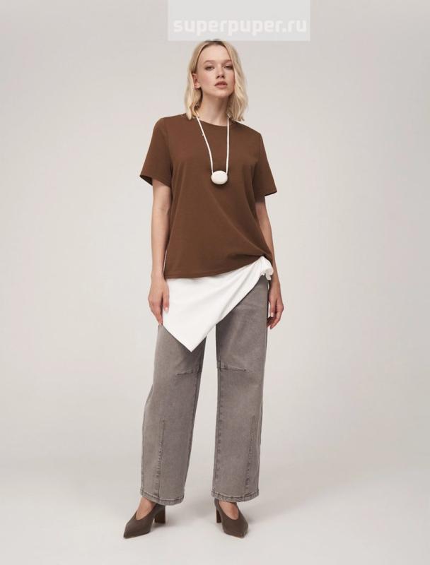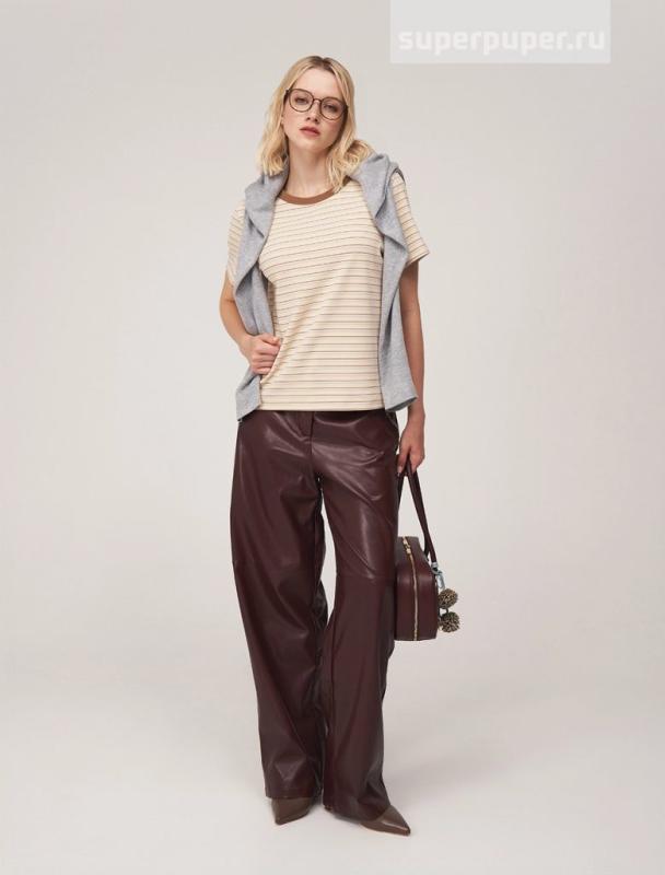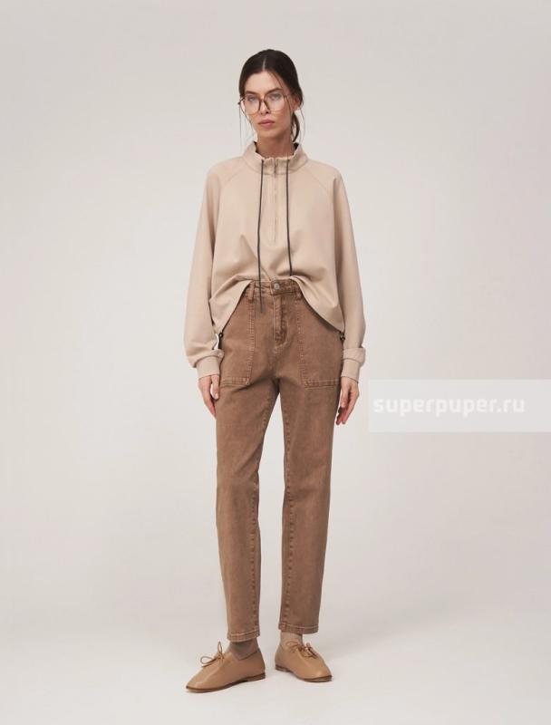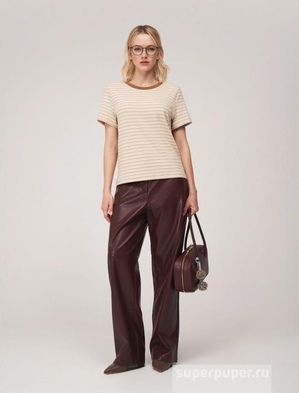 Видео: https-//hassfashion.ru/upload/iblock/ea1/7vukfoqbk8cze3328abk944bsfqgk055.mp4 осень-зима 60% Хлопок, 30% Тенсел, 10% Спандекс Брюки прямого силуэта с посадкой на уровне талии. По поясу эластичная резинка. По передней части изделия – вертикальные швы, вытягивающие силуэт. Сзади, с правой стороны – накладной карман. Выполнены из хлопка и тенсела с добавлением спандекса, что обеспечивает комфорт и долговечность. Саржевое переплетение придает ткани прочность и интересный диагональный рисунок. Представлены в коричневом и бежевом оттенке.