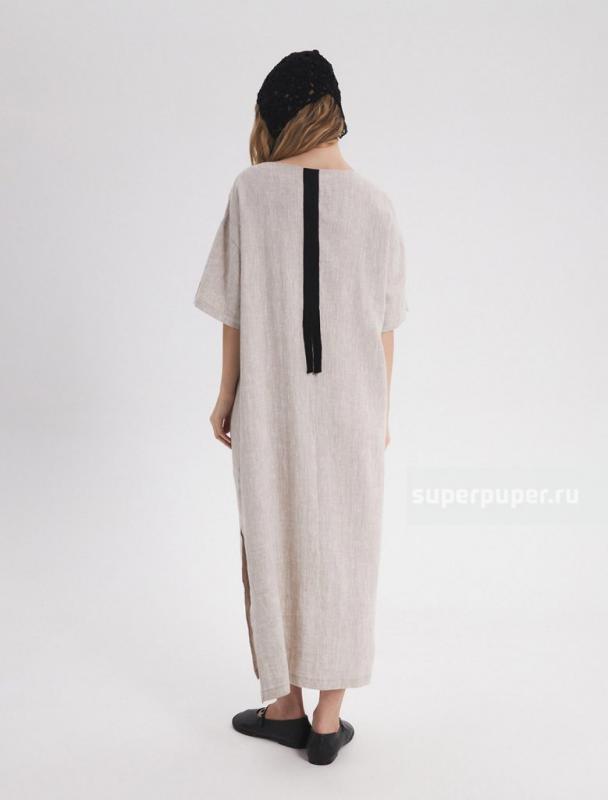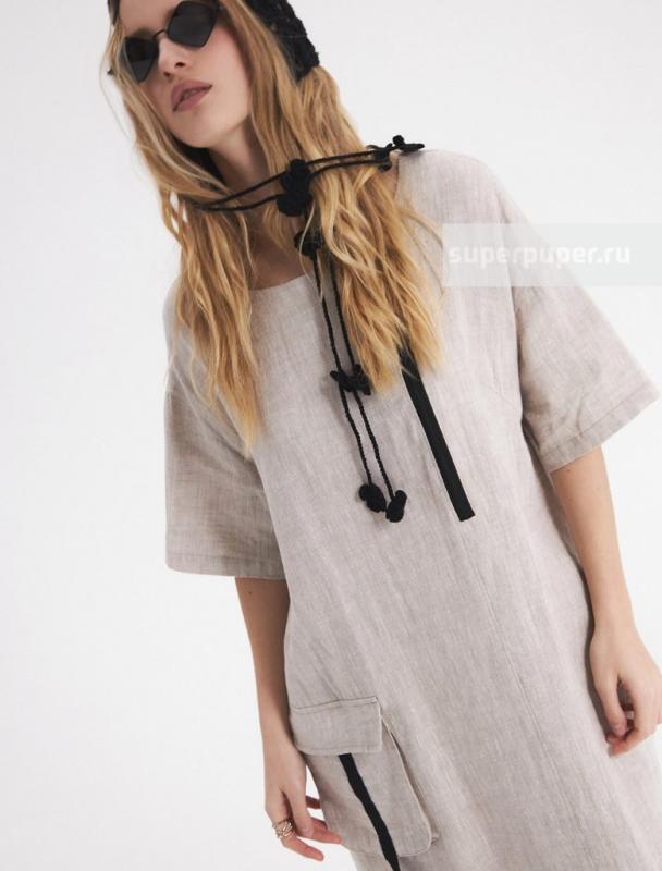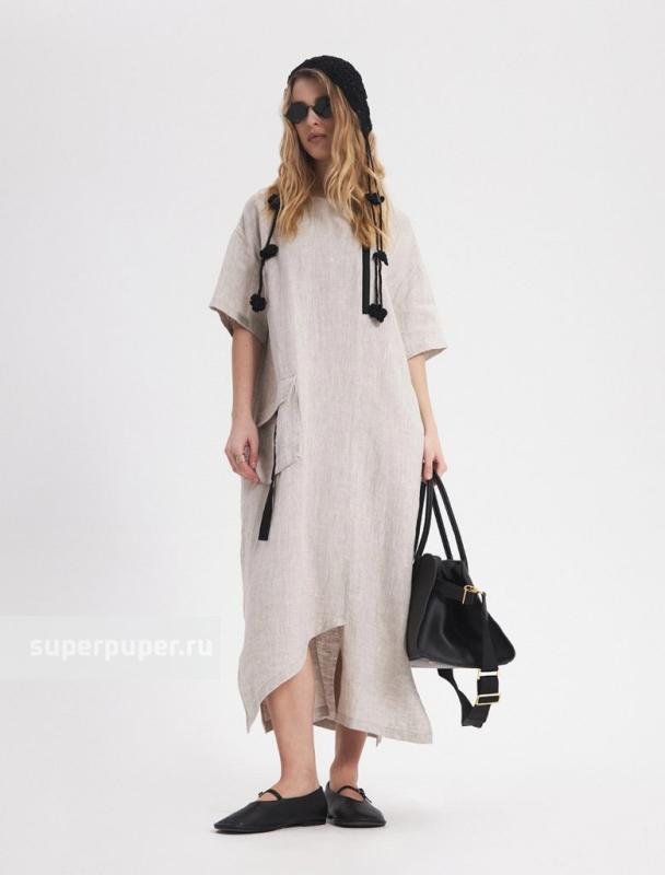 Видео: https-//hassfashion.ru/upload/iblock/e03/dgti119qgz00nnl6vph1kmu336m11fvo.mp4 весна-лето 100% Лен Платье-рубашка со спущенной линией плеча и ассиметричным низом. По передней части изделия карман с клапаном