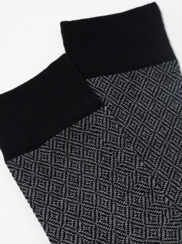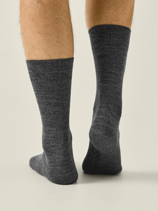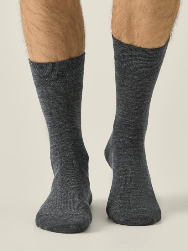 Удлинённые носки с шерстью обеспечат комфорт и тепло даже в прохладную погоду, двойная анатомическая резинка плотно облегает ногу, не сдавливая её, и гарантирует удобную фиксацию. Модель прекрасно подойдёт для образов с кроссовками или классической мужской обувью.