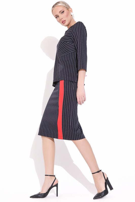 Юбка – карандаш считается базовым предметом женского гардероба, который никогда не выйдет из моды. Эта модель отлично смотрится на всех типах фигуры. Пояс на подкройной обтачке, по спинке замок, спереди разрез. Длина: миди Материал: костюмный Вид застежки: по спинке замок Принт: В тонкую полоску Силуэт: прилегающий Карманы: нет Подкладка: отсутствует Длина: 44-57см
