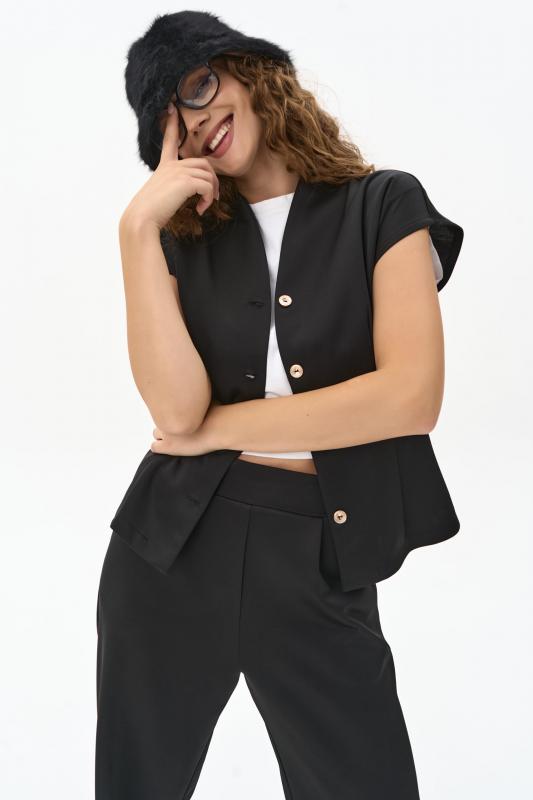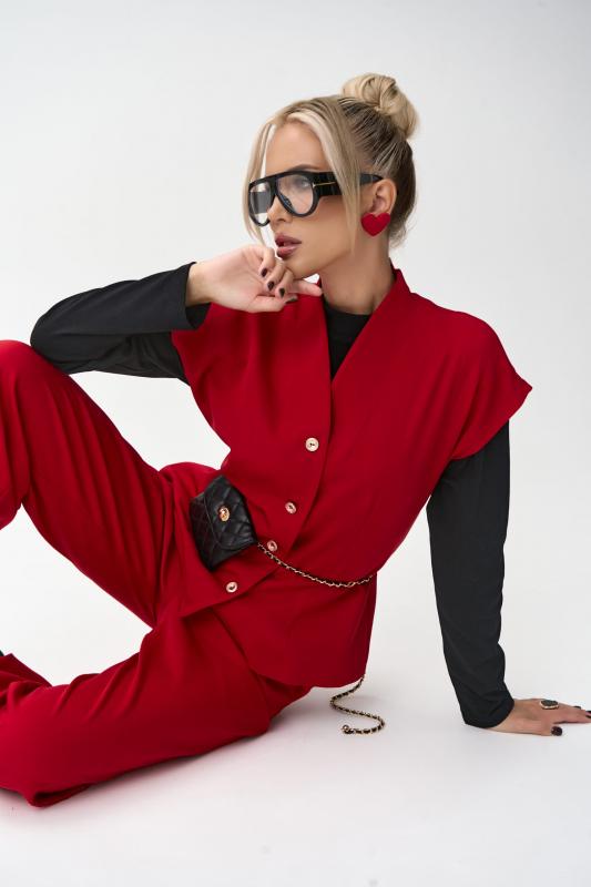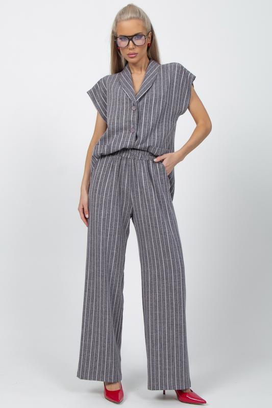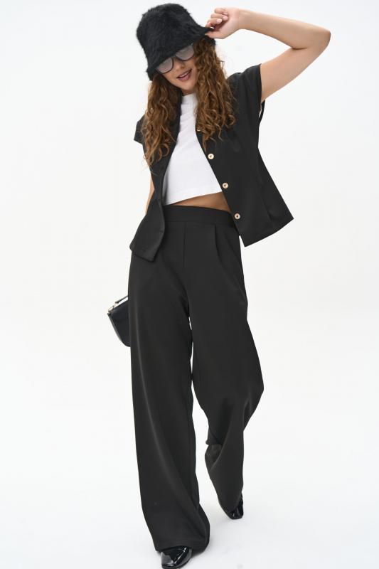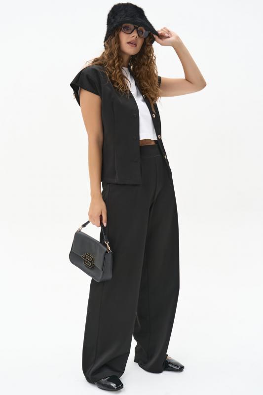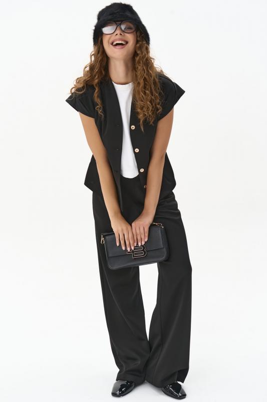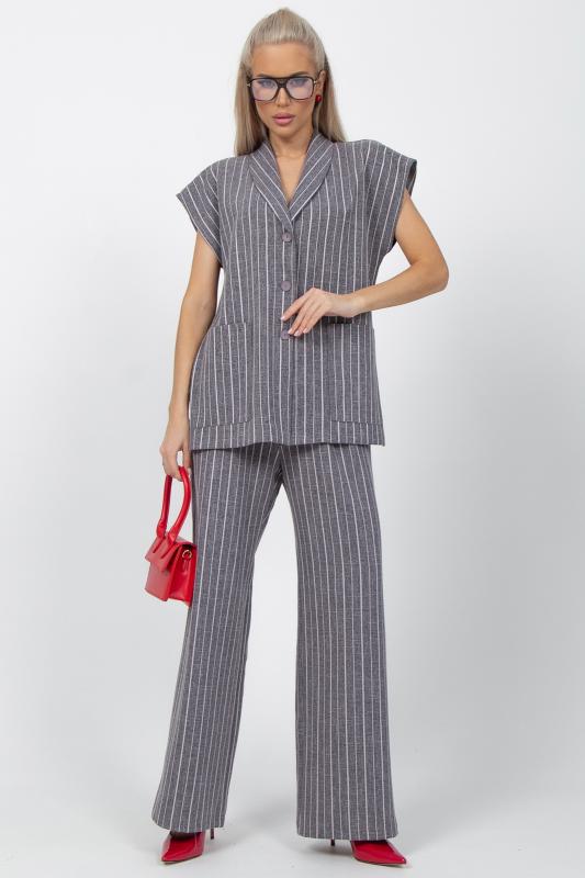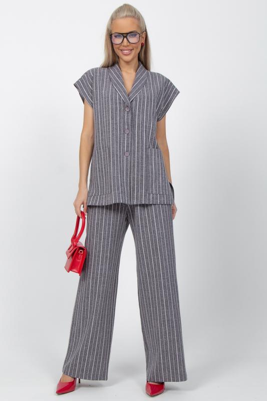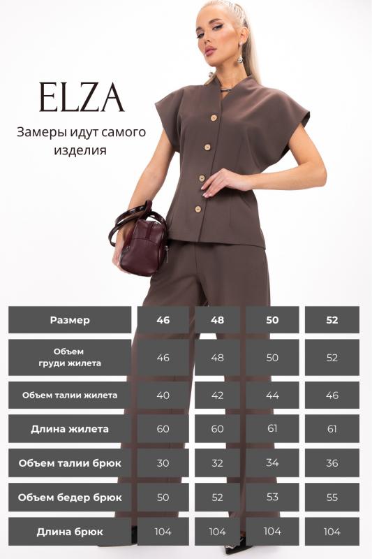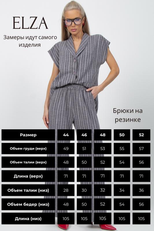 Чтобы подобрать идеальную посадку, мы разделили костюм на два отдельных товара: жакет и брюки продаются отдельно — вы можете выбрать нужный размер для каждой части. Позвольте представить вам настоящий must-have сезона – наш элегантный костюм который станет неотъемлемой частью вашего гардероба. Почему именно этот костюм? Давайте разберёмся. Во-первых, он выполнен из приятной костюмной ткани, что сразу придает ему роскошный вид. Вас точно заметят. Элегантный комплект состоящий из жилета и широких брюк – идеальный вариант для разных событий и мероприятий. Но самое главное – это его способность легко интегрироваться в любые сочетания с любыми вещами из гардероба. Настоящий ключ к вашему модному и современному образу. Попробуйте его сами и ощутите, как легко и изящно можно выглядеть в любой ситуации. (Брюки на резинке). Длины: жилет 46-48р 60 см, 50-52р- 61 см, брюки – 104 см