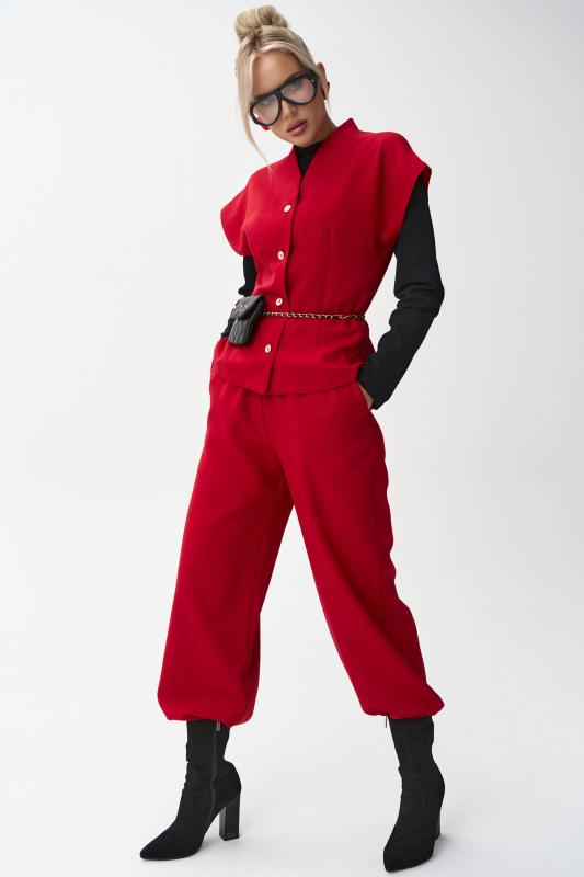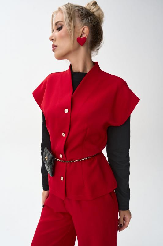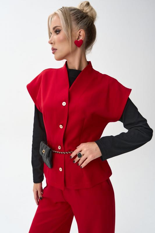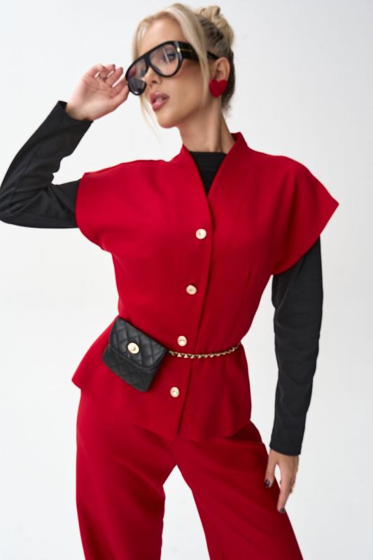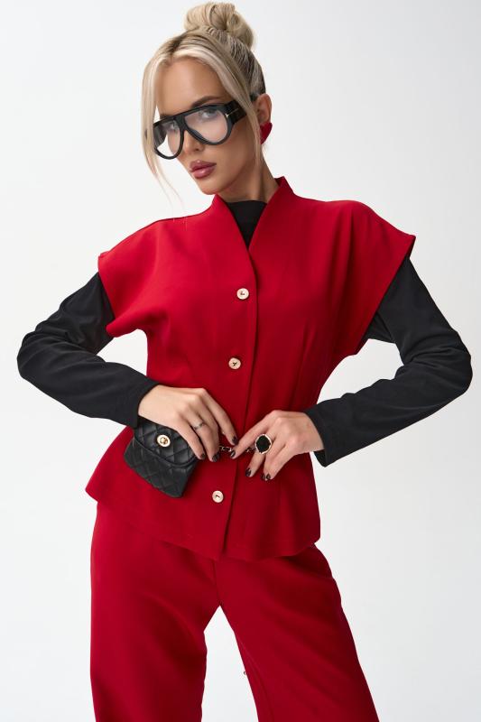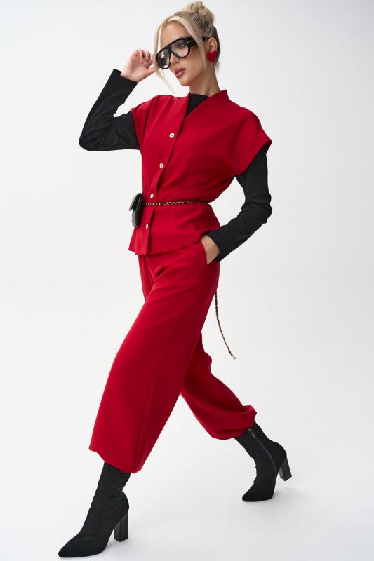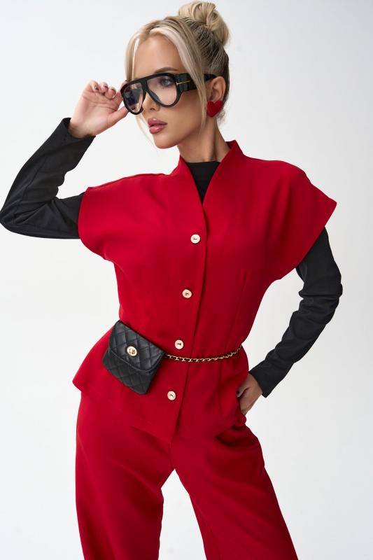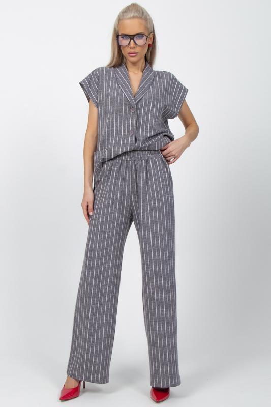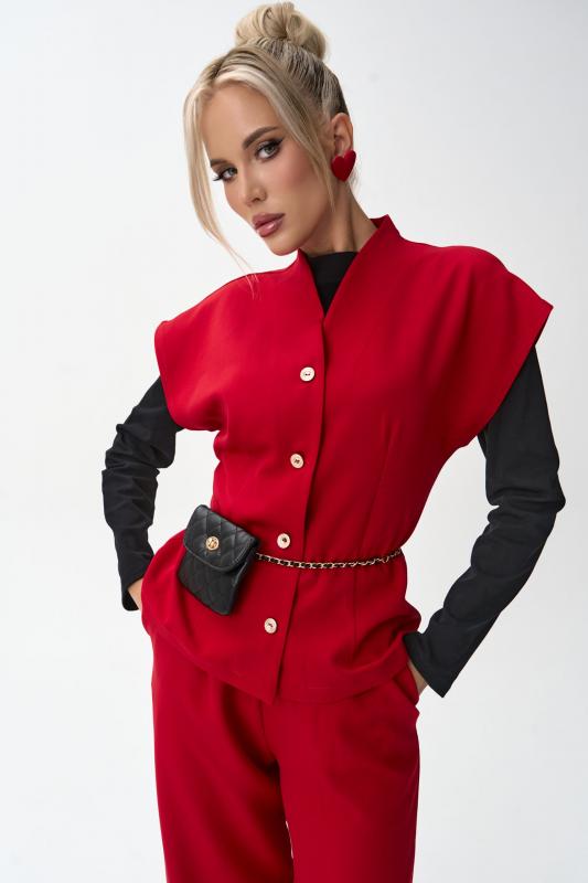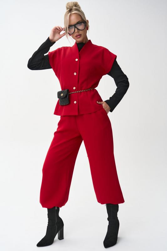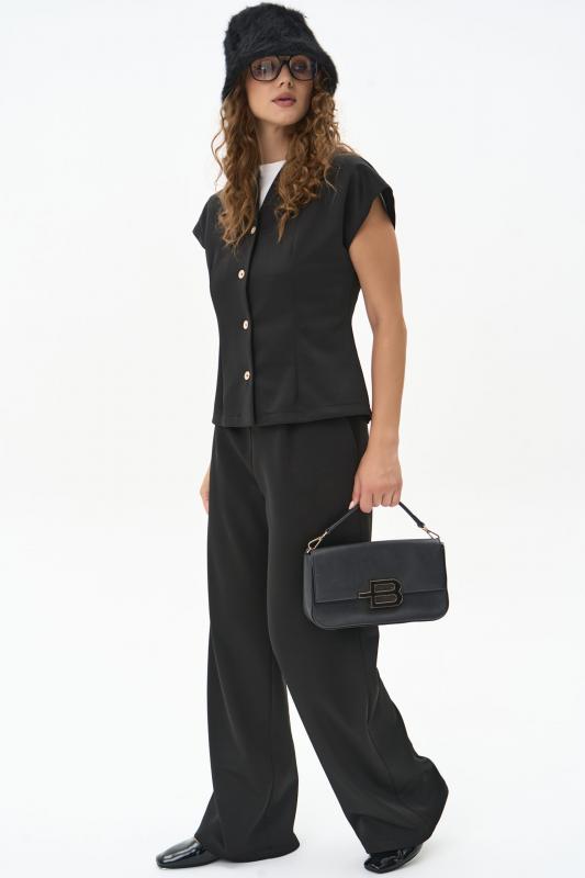 Чтобы подобрать идеальную посадку, мы разделили костюм на два отдельных товара: жакет и брюки продаются отдельно — вы можете выбрать нужный размер для каждой части. Позвольте представить вам настоящий must-have сезона – наш элегантный костюм который станет неотъемлемой частью вашего гардероба. Почему именно этот костюм? Давайте разберёмся. Во-первых, он выполнен из приятной костюмной ткани, что сразу придает ему роскошный вид. Вас точно заметят. Элегантный комплект состоящий из жилета и широких брюк – идеальный вариант для разных событий и мероприятий. Но самое главное – это его способность легко интегрироваться в любые сочетания с любыми вещами из гардероба. Настоящий ключ к вашему модному и современному образу. Попробуйте его сами и ощутите, как легко и изящно можно выглядеть в любой ситуации. (Брюки на резинке). Длины: жилет 46-48р 60 см, 50-52р- 61 см, брюки – 104 см
