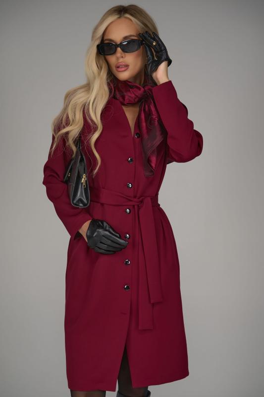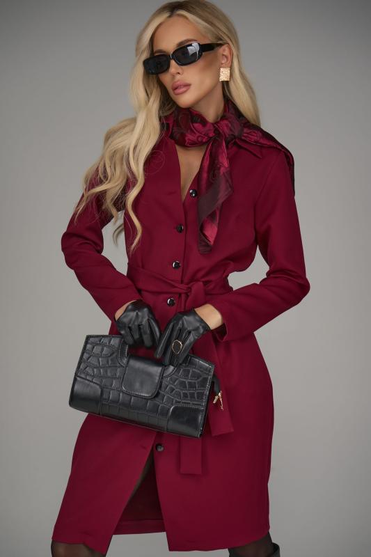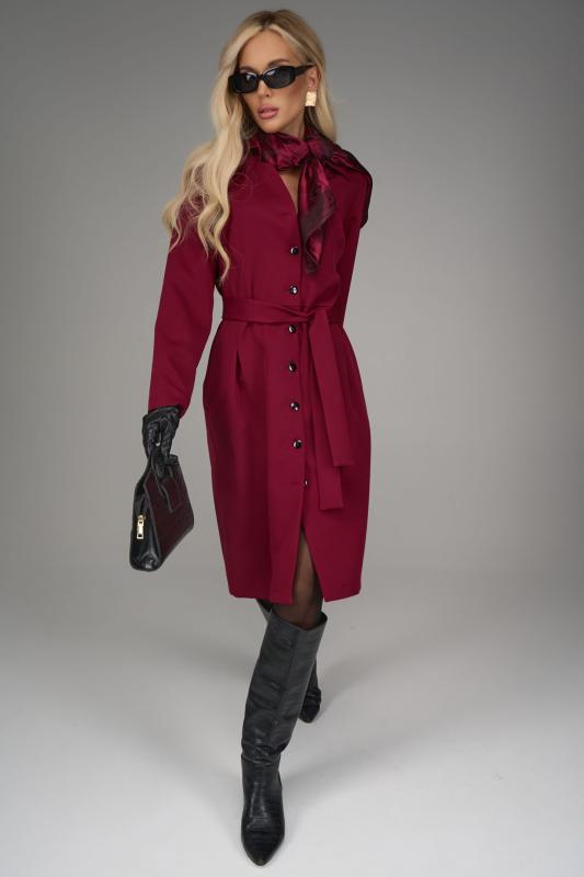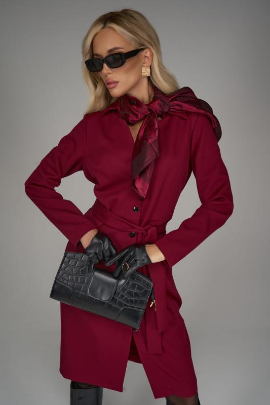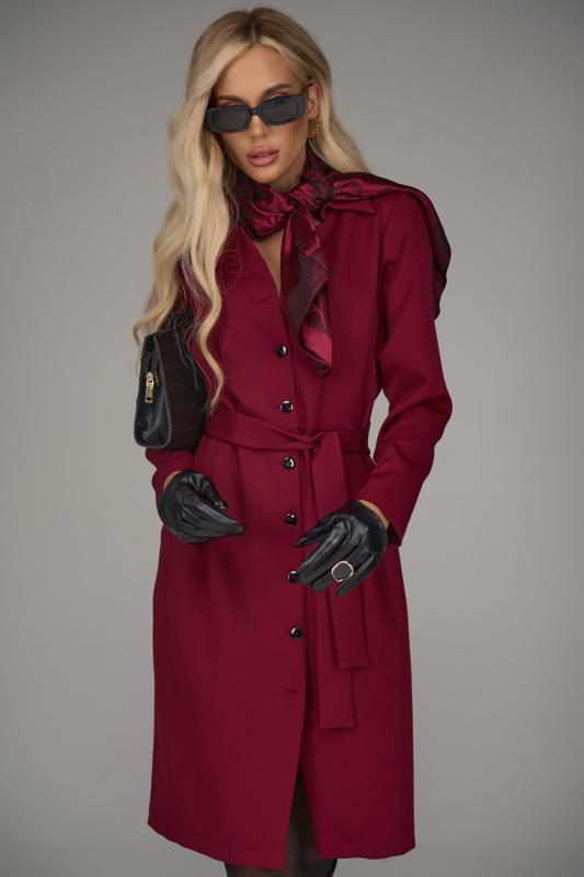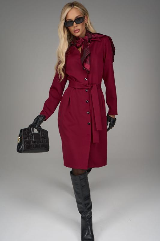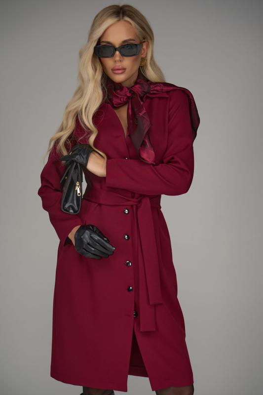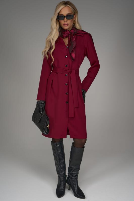 Платье «Мариона» сочетает в себе силуэт строгого жакета и лёгкость вечернего одеяния, идеальный выбор для тех, кто хочет блистать на праздничном вечере. Материал: костюмная ткань средней плотности Воротник и вырез: узкий стойковый элемент с аккуратным V-углублением по центру — вырез сдержанно открывает шею, не нарушая строгой линии. Накидка: основная характерная деталь — длинные летящие панели-накидки, прикреплённые по линии плеч, с продольными разрезами, в которых видны руки. Эти «летящие» панели создают эффект плаща: движение, лёгкость и театральность, сохраняя при этом структурированную линию плеч. Силуэт: приталенный прямой корпус-платье под накидкой, подчёркивающий талию и создающий контраст между структурой лифа и мягкой драпировкой накидки. Длина: мини — уравновешивается объёмной накидкой, поэтому образ выглядит празднично, но сбалансированно. Ткань и цвет: насыщенный красный оттенок