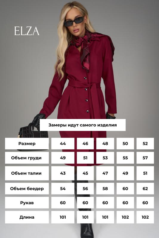 Элегантное платье-рубашка миди длины с акцентом на талию. Прямой силуэт корректируется поясом, создавая женственный образ. Классический отложной воротник и планка с пуговицами добавляют образу строгости и утончённости. Длины: ( 44-48р-101 см, 50-52р-102 см, рукав 60 см). Замеры 44 46 48 50 52 ПОГ 49 51 53 55 57 ПОТ 43 45 47 49 51 ПОБ 54 56 58 60 62 рукав 60 60 60 60 60 длина 101 101 101 102 102 Ткань: костюмная Длина: миди Застёжка: на пуговицы Детали: пояс в тон, складки на талии для лучшей посадки Рукав: длинный Стиль: офисный, повседневный, smart casual Дополнительные элементы: есть пояс Силуэт: полуприлегающий Карманы: есть Размер изделия на модели: 44 Рост модели: 172 см Параметры модели: 88-63-96