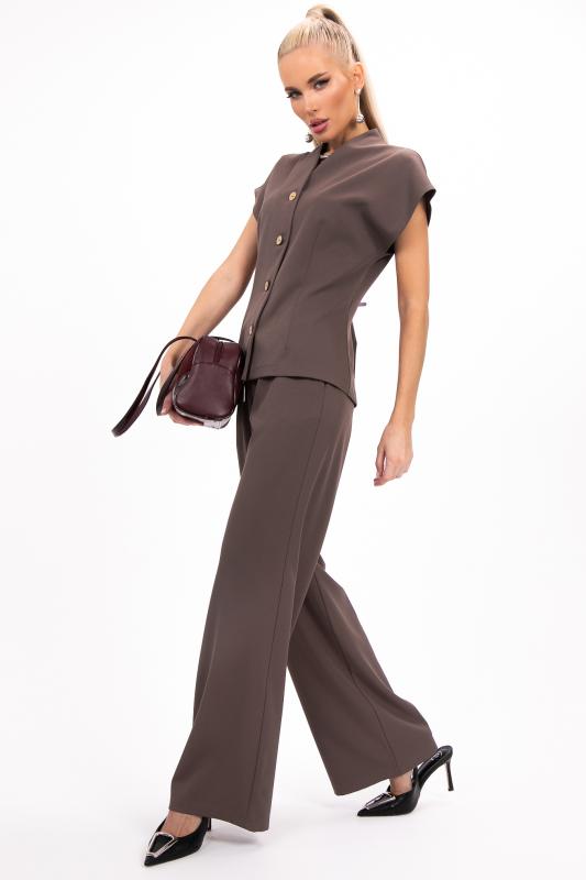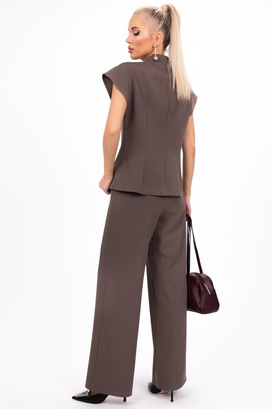 Дорогие девушки, позвольте представить вам настоящий must-have сезона – наш элегантный костюм который станет неотъемлемой частью вашего гардероба. Почему именно этот костюм? Давайте разберёмся. Во-первых, он выполнен из приятной костюмной ткани, что сразу придает ему роскошный вид. Вас точно заметят. Элегантный комплект состоящий из жилета и широких брюк – идеальный вариант для разных событий и мероприятий. Но самое главное – это его способность легко интегрироваться в любые сочетания с любыми вещами из гардероба. Настоящий ключ к вашему модному и современному образу. Попробуйте его сами и ощутите, как легко и изящно можно выглядеть в любой ситуации. (Брюки на резинке). Длины: жилет 46-48р 60 см, 50-52р- 61 см, брюки – 104 см