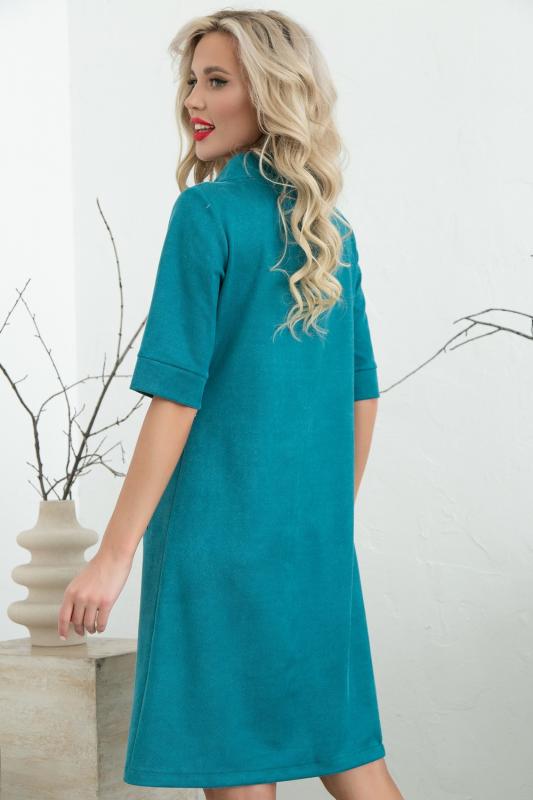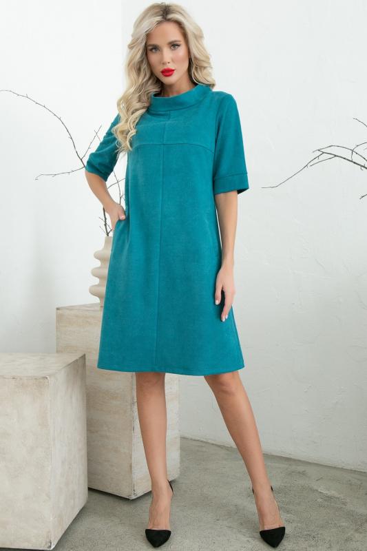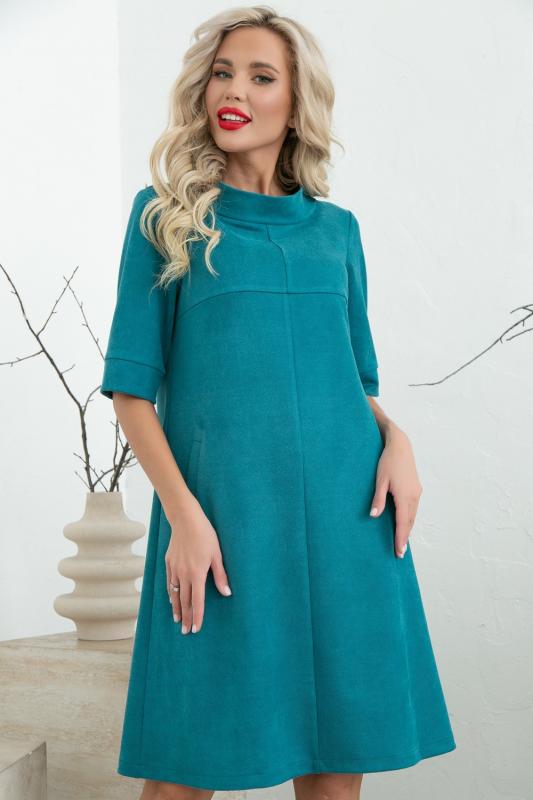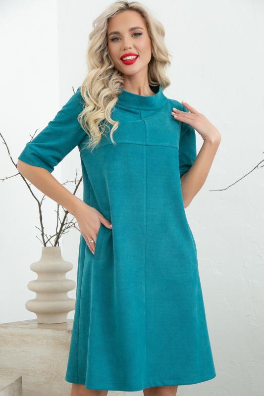 Современное платье для любительниц строгих,но ярких образов. Платье A-силуэта, выполненно из микровельвета. Рукав 3-4 с манжетом. Ворот стойка, функциональные карманы. Материал: микровельвет Длина: миди Вид застежки: без застёжки Силуэт: свободный Карманы: есть Подкладка: отсутствует Длина: 46р-97см, 48р-98см, 50р-99см, 52р-100см Размер изделия на модели: 44 Рост модели: 172 см Параметры модели: 88-63-96