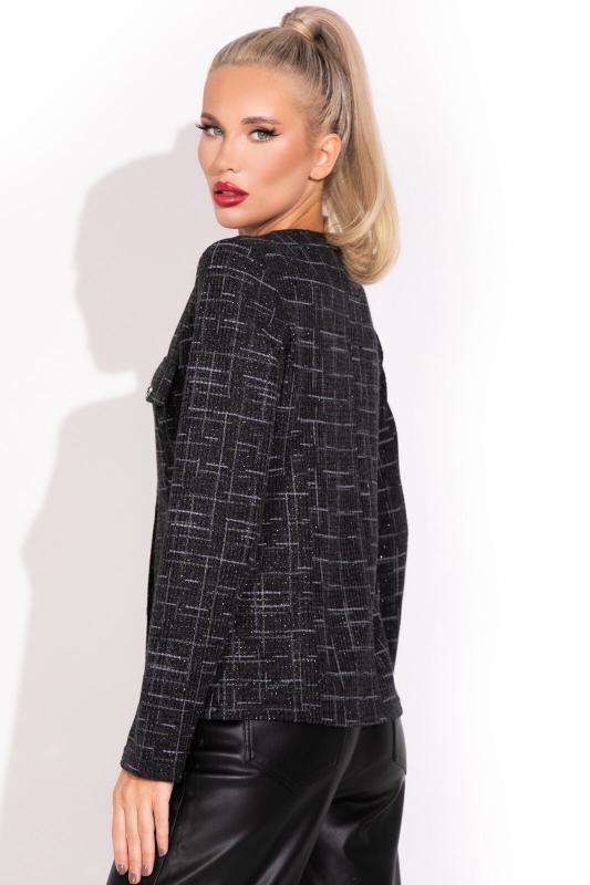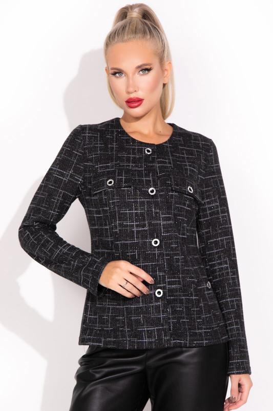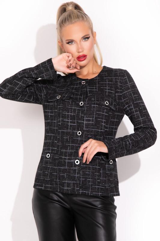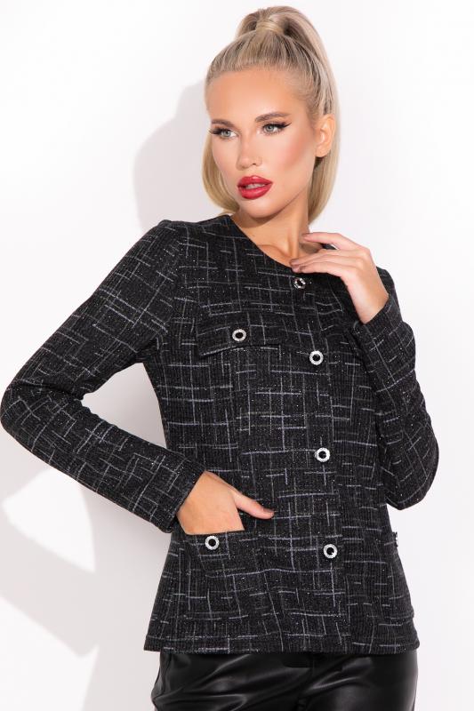 Элегантный жакет в стиле “Шанель” -идеальный выбор для стильных женщин, которые ценят комфорт. Рукав длинный, карманы, застежка на пуговицах, без подклада. Длины: ( 44-54 р- 60 см, длина рукава 61 см). Материал: трикотаж Вид застежки: пуговицы Силуэт: приталенный Карманы: есть Подкладка: отсутствует Декоративные элементы: отсутствуют Длина по спинке от верхней точки плеча: 44-54 р- 60 см, длина рукава 61 см Размер изделия на модели: 44 Рост модели: 172 см Параметры модели: 88-63-96