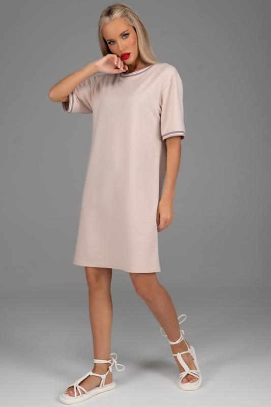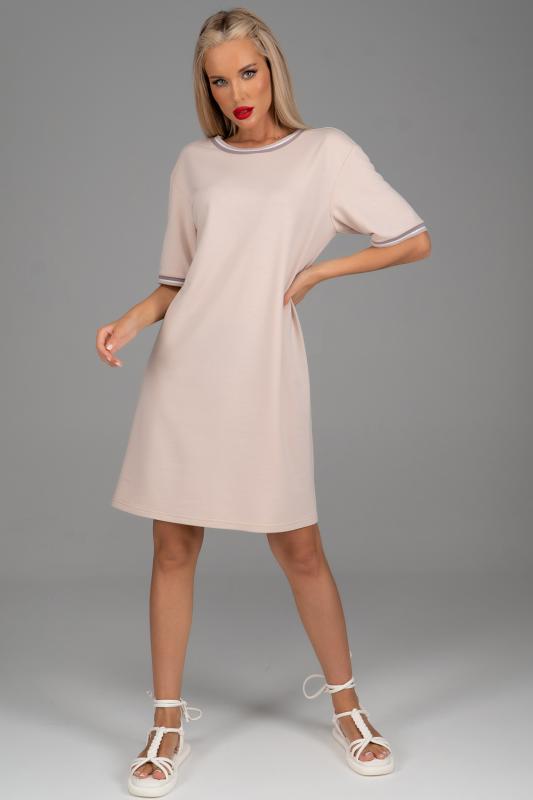 Вашему вниманию представлено стильное, невероятно удобное и комфортное платье. Выполнено в стиле оверсайз, оно сядет на любой фигуре и идеально подойдет как для высоких так и невысоких девушек. Лаконичность и демократичность фасона миди с коротким рукавом наделяют образ магнетизмом. Модель дополнена V-образным вырезом и мягкими лампасами на рукавах.