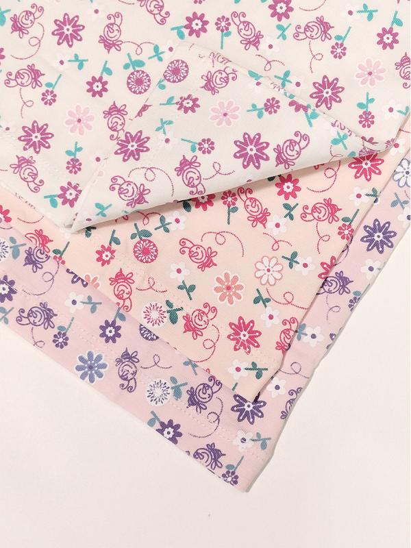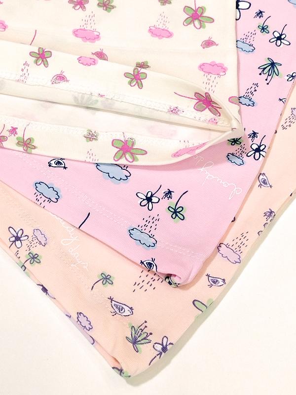 Описание и замеры Комплект белья для девочки: майка, трусики-шортики, из эластичного х-б трикотажа, с красочным принтом "