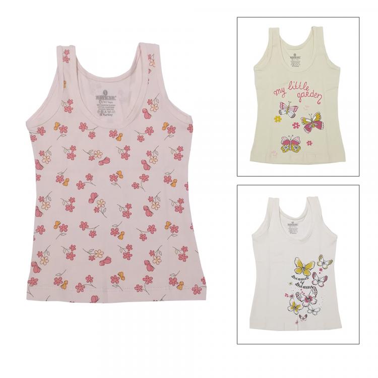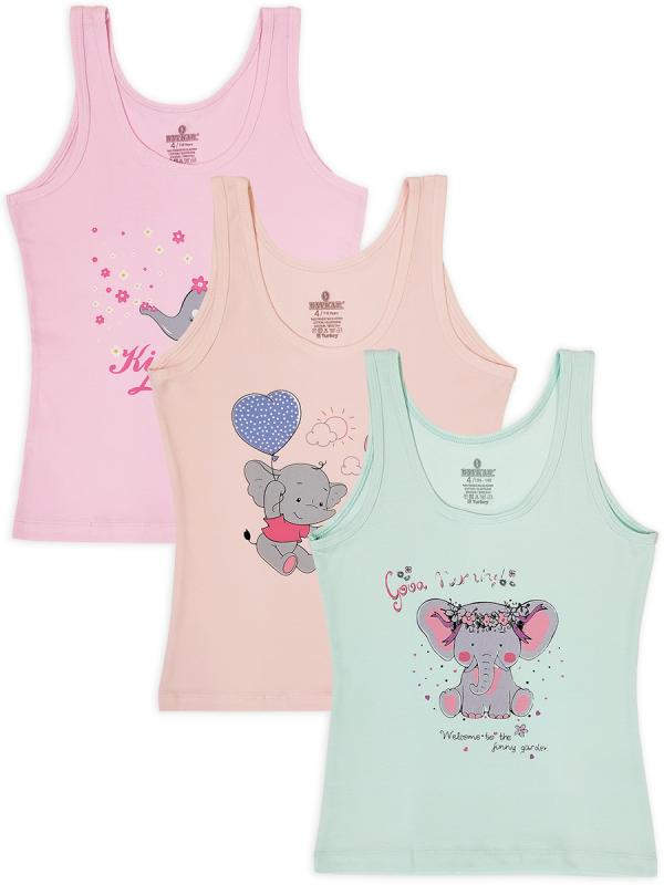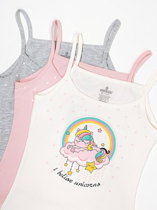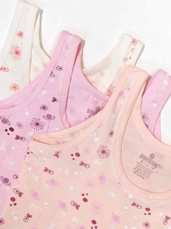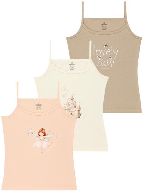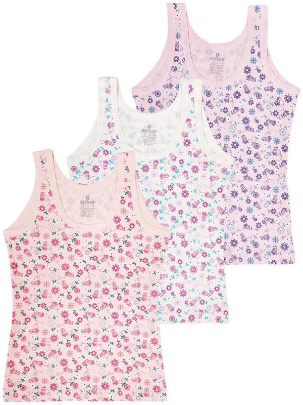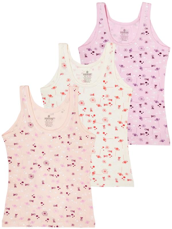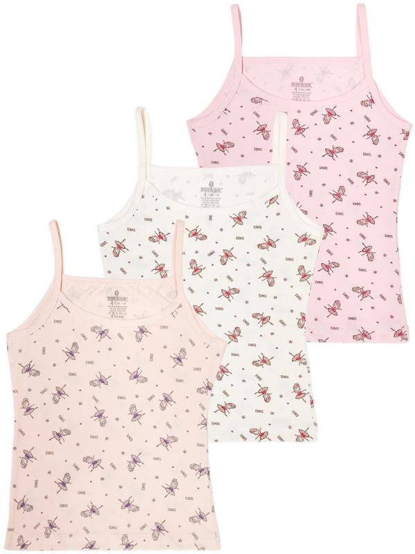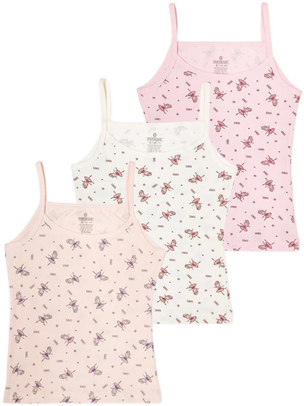 . Полуприлегающий силуэт. Широкие бретели отделаны эластичным трикотажным кантом. Размер 1 (98-104), длина- 41 см, обхват груди- 50 см. Размер 2 (110-116), длина- 43 см, обхват груди- 54 см. Размер 3 (122-128), длина- 46 см, обхват груди- 58 см. Размер 4 (134-140), длина- 49 см, обхват груди- 64 см. Размер 5 (146-152), длина- 51 см, обхват груди- 68 см. Замеры выборочные, могут незначительно отличаться. ВНИМАНИЕ! Товар продается по 3 шт. одного размера. Расцветка может прийти любая, из представленных на фото (цвета могут дублироваться).