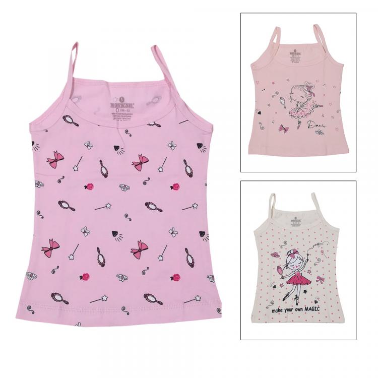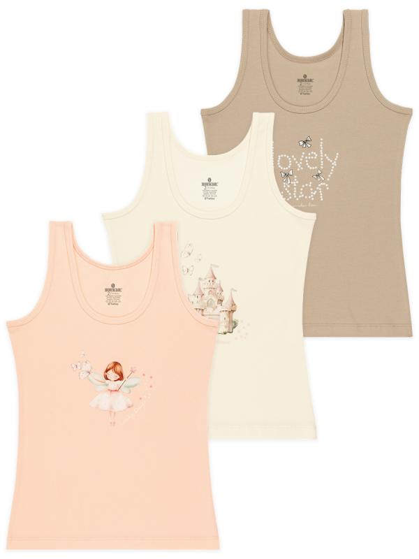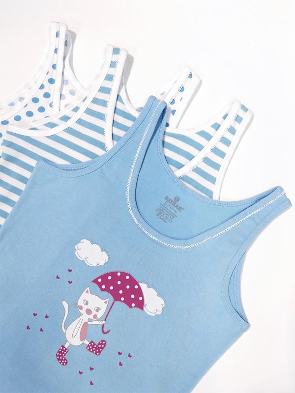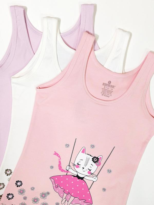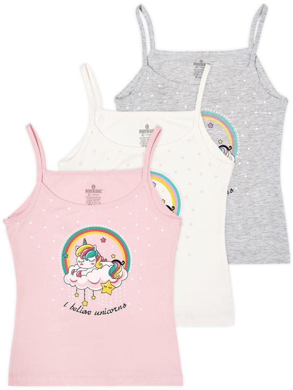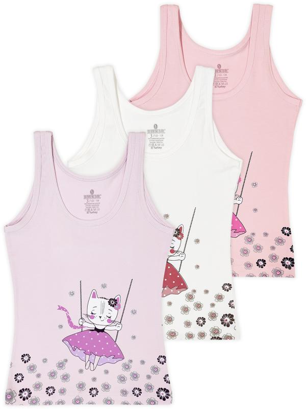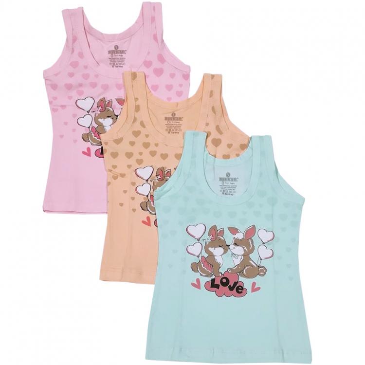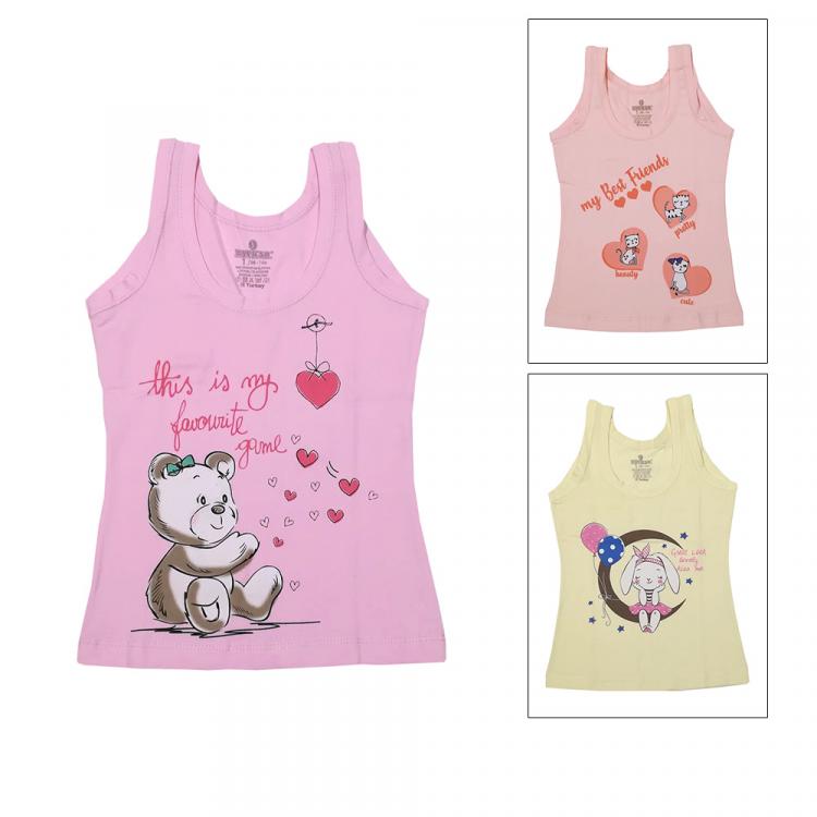 . Полуприлегающий силуэт. Широкие бретели отделаны эластичным трикотажным кантом. Размер 1 (98-104), длина- 41 см, обхват груди- 50 см. Размер 2 (110-116), длина- 43 см, обхват груди- 54 см. Размер 3 (122-128), длина- 46 см, обхват груди- 58 см. Размер 4 (134-140), длина- 49 см, обхват груди- 64 см. Размер 5 (146-152), длина- 51 см, обхват груди- 68 см. Замеры выборочные, могут незначительно отличаться. ВНИМАНИЕ! Товар продается по 3 шт. одного размера. Расцветка может прийти любая, из представленных на фото (цвета могут дублироваться).